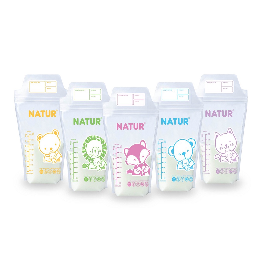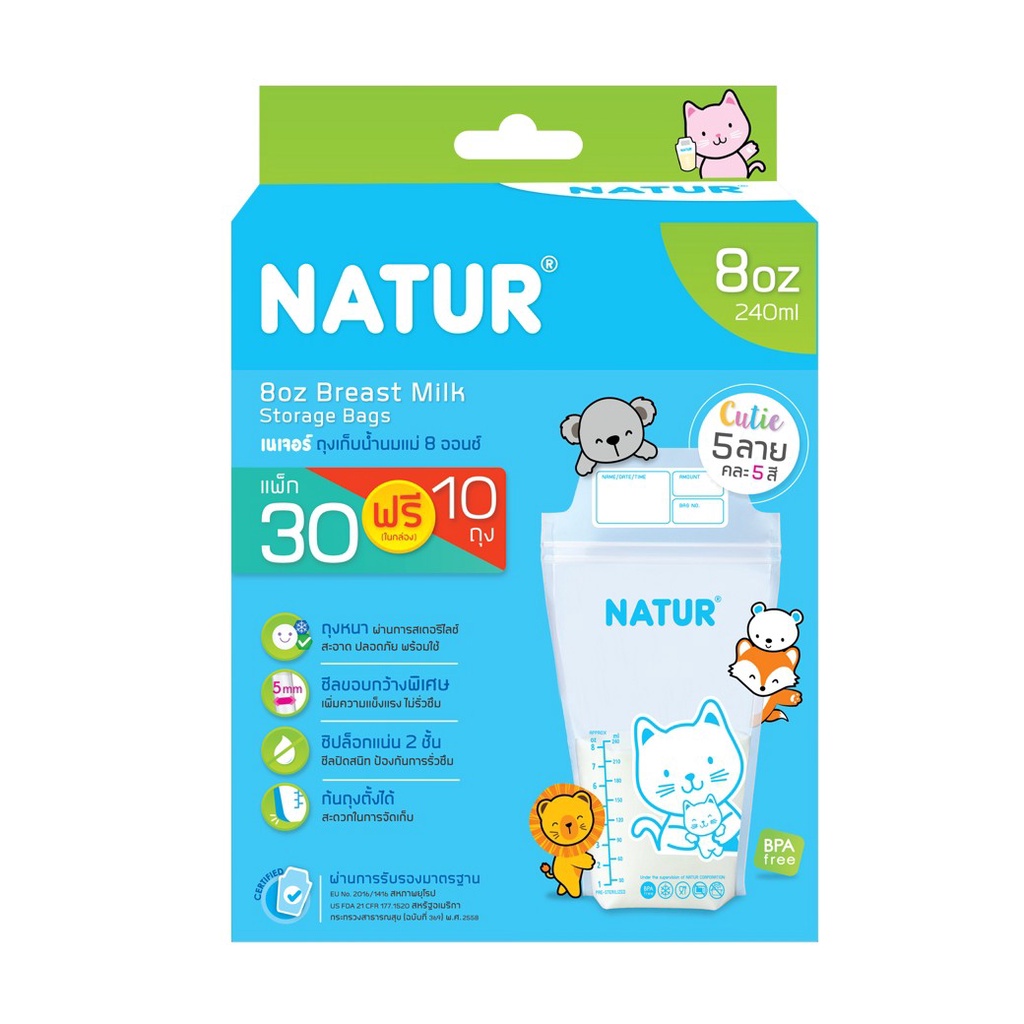 [แพ็ก 30 ฟรี 10] NATUR เนเจอร์ ถุงเก็บนม ถุงเก็บน้ำนมแม่ 8oz (คิวตี ้)