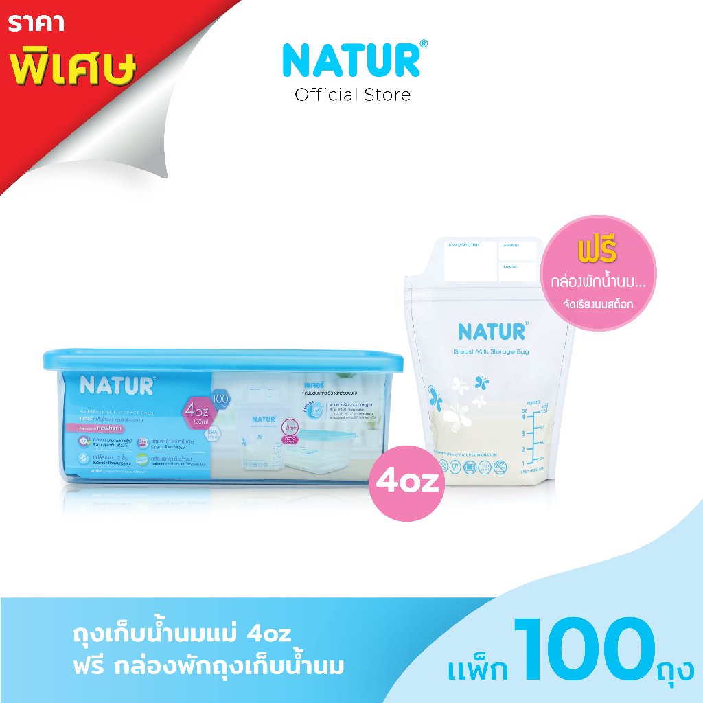 NATUR ถุงเก็บน้ำนมแม่ 4oz / 8oz แพ็ก 100