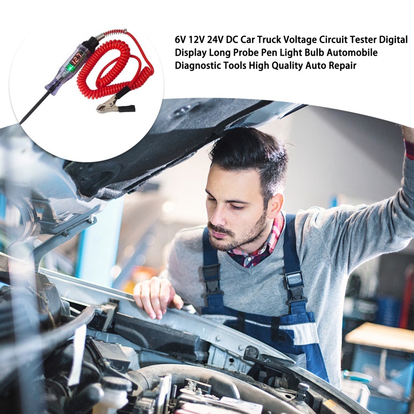 6/12/24V DC เครื่องทดสอบวงจรแรงดันไฟฟ้า จอแสดงผลดิจิตอล โพรบยาว ปากกาหลอดไฟ เครื่องมือวิเคราะห์รถยนต์ คุณภาพสูง