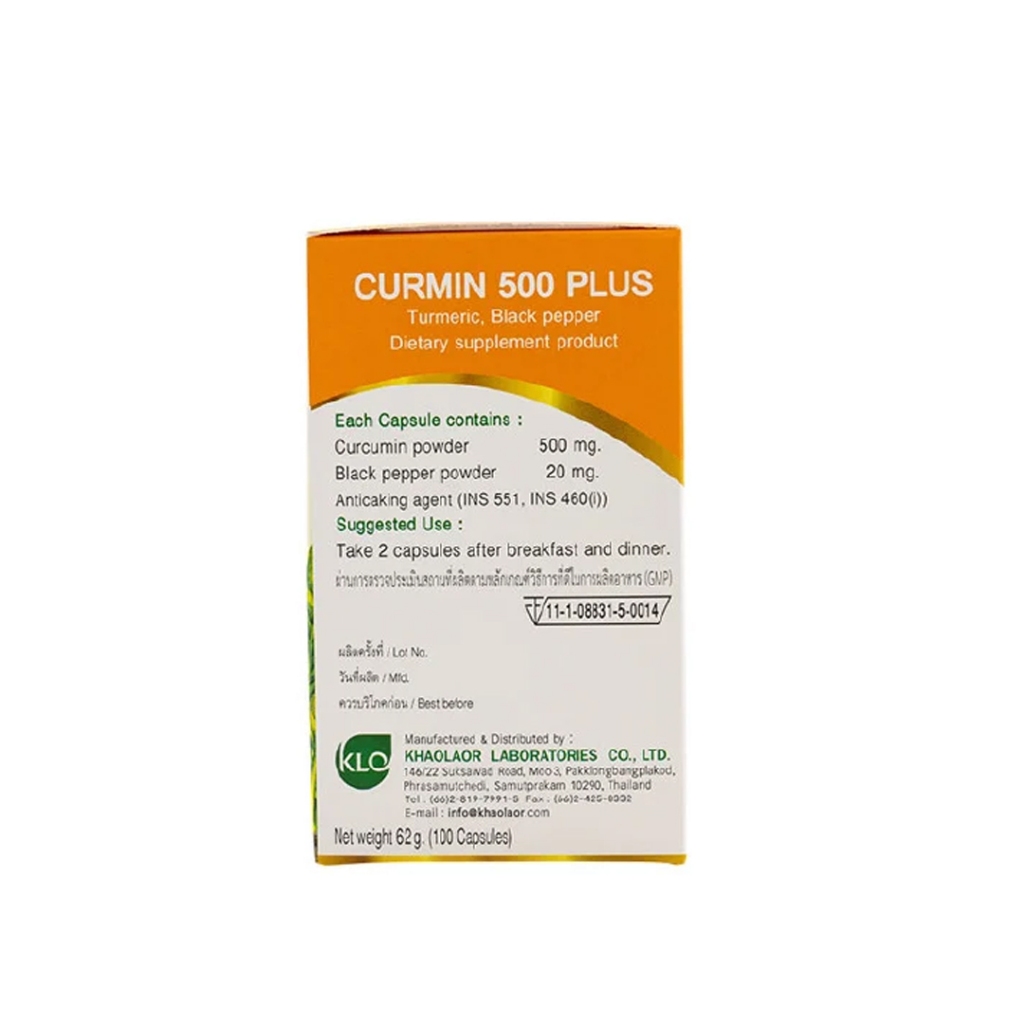 ขาวละออ เคอร์มิน 500 พลัส ขมิ้นชันผสมพริกไทยดำ 100 แคปซูล [1 ขวด] Khaolaor Curmin 500 Plus Turmeric with Black Pepper 9