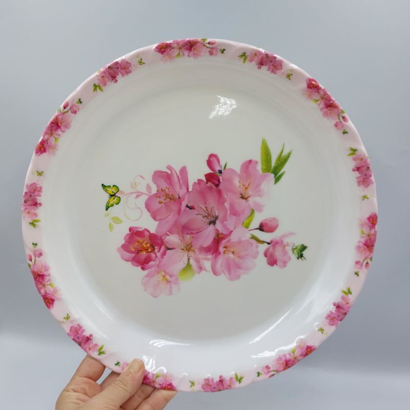 (12นิ้ว) ถาดเมลามีน ลายดอกไม้ เสิร์ฟอาหาร บรรจุ1ใบ