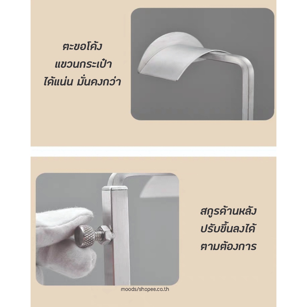 สแตนเลสแขวนกระเป๋ากับโต๊ะ ขาตั้งวางโชว์ ขาตั้งกระเป๋าถือปรับความสูงได้ ชั้นแขวนกระเป๋าสแตนเลส พร้อมส่ง