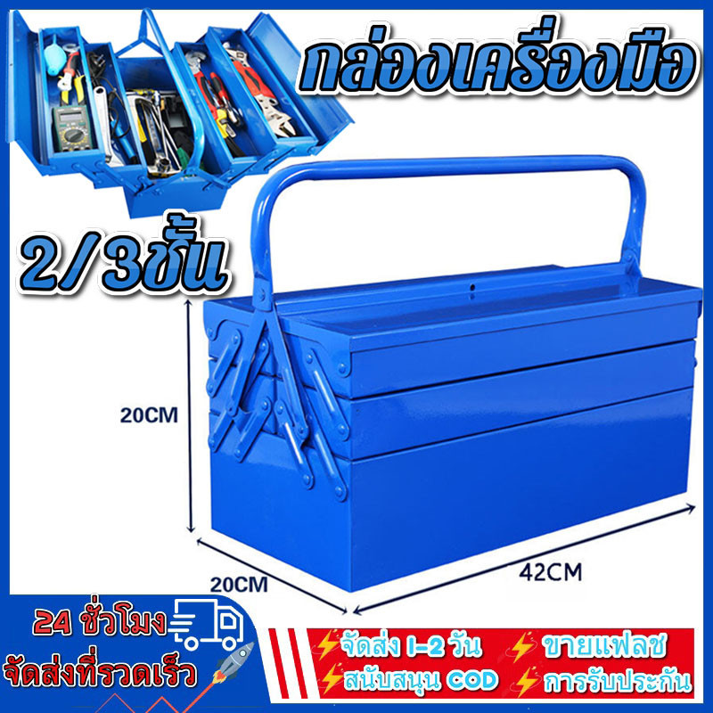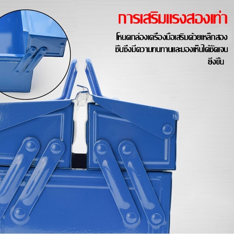 กล่องเครื่องมือ 21นิ้ว 3ชั้น (สีน้ำเงิน) เหล็กหนา ทนทาน Tool Box มีห่วงใส่กุญแจกันหาย