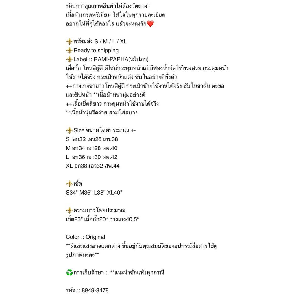 พร้อมส่ง ดำL/น้ำตาลครีมSML ⚡️RM 8949 ชุดเซต3ชิ้น สุดคุ้ม!! สวยหรูคลาสสิก [ ครีม มีครบ SML XL ]