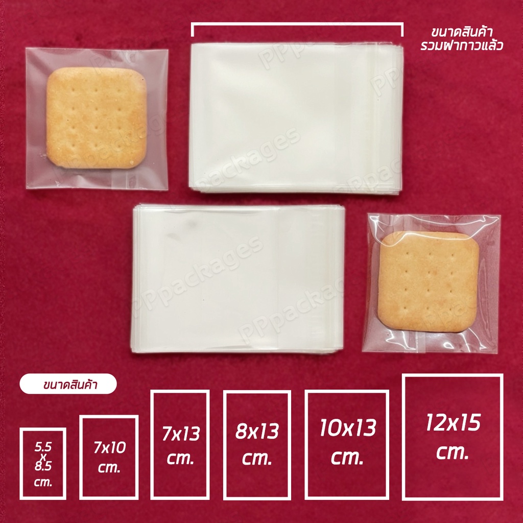 (แพค100ใบ) ถุงฝากาวOPP คุกกี้ แบบใส - แบบขุ่น