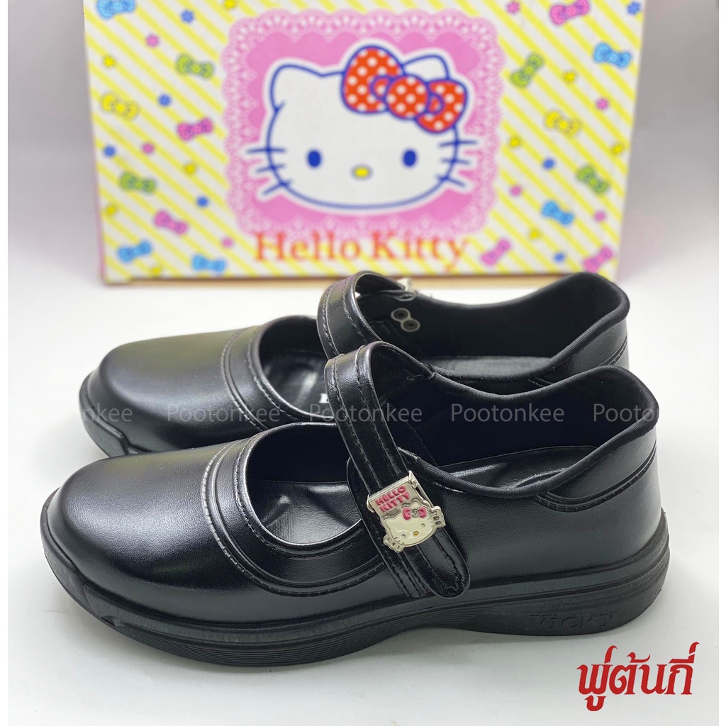 Hello Kitty รองเท้านักเรียนหญิง แบบตัวล็อค ตีนตุ๊กแก KT447 ลิขสิทธิ์แท้จากญี ่ปุ่น Size 29-46 พร้อมส่ง