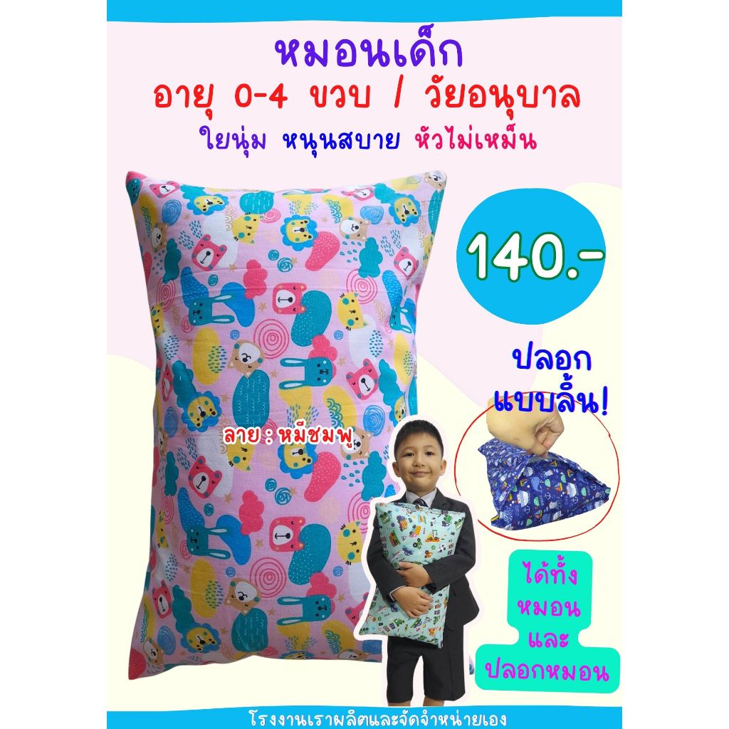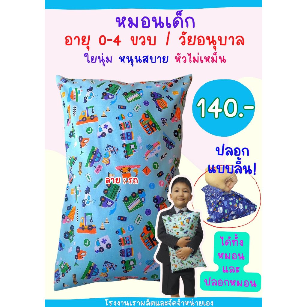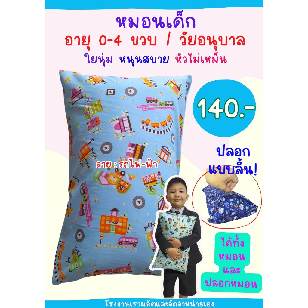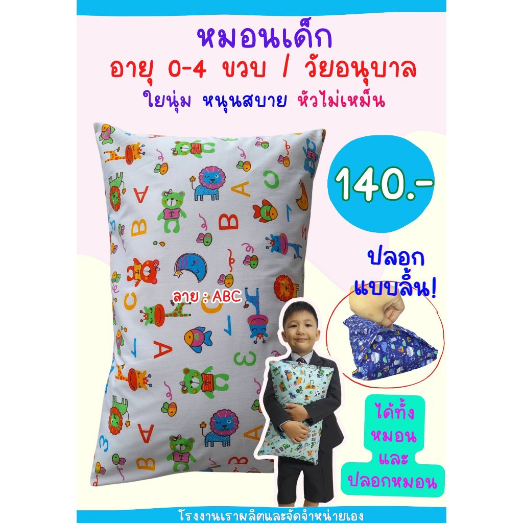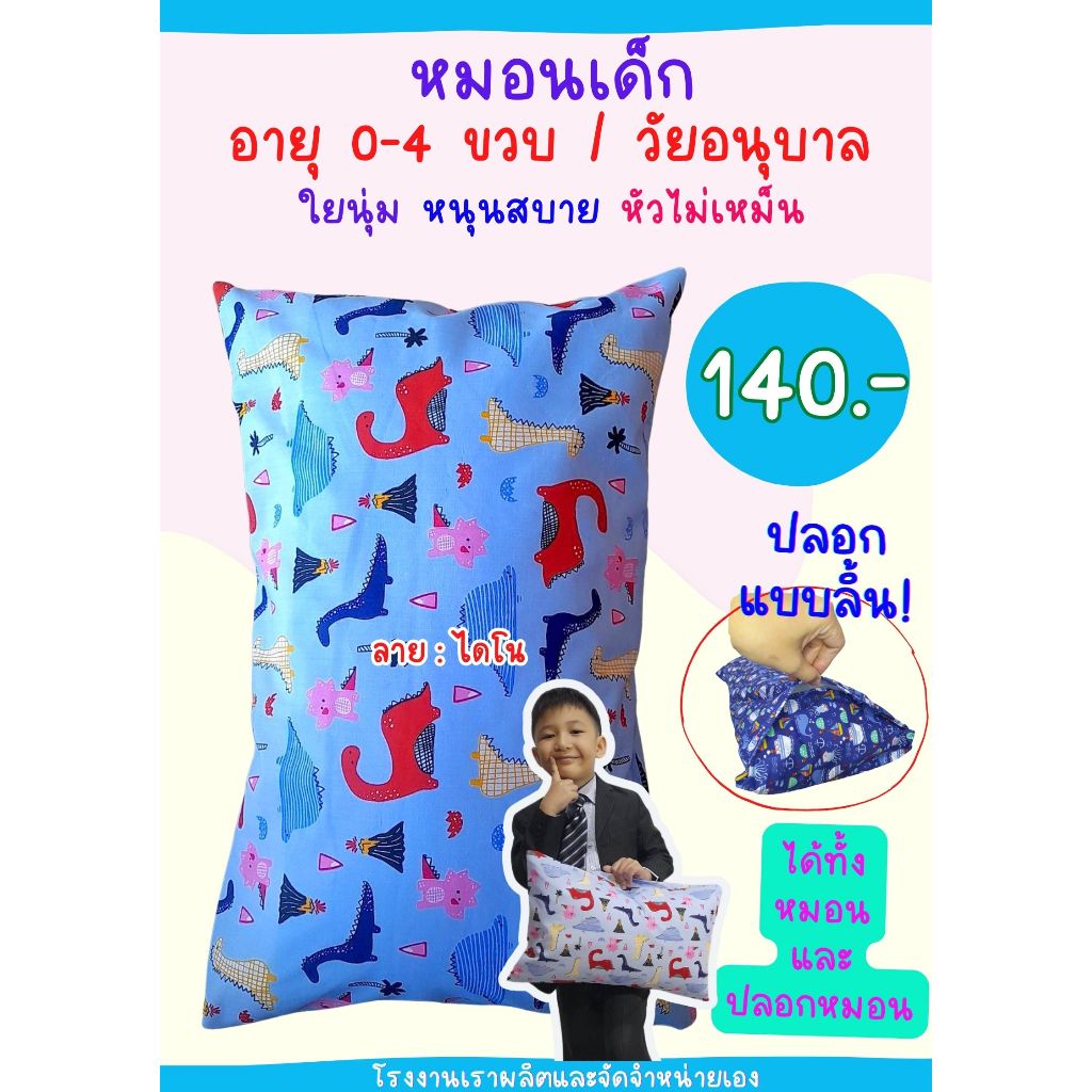 เฉพาะปลอกหมอนหนุนเด็ก 10x16 นิ้ว แบบมีลิ้น ใส่กับหมอนของทางร้าน
