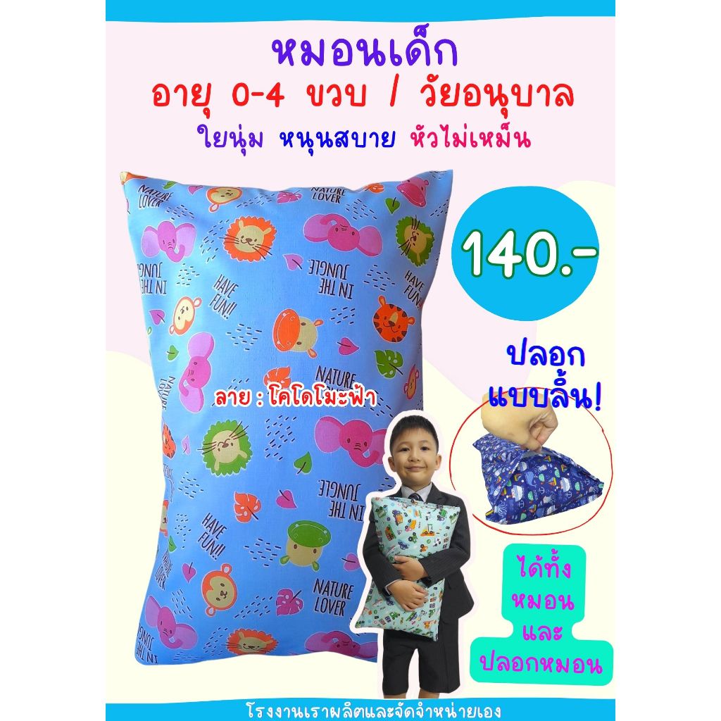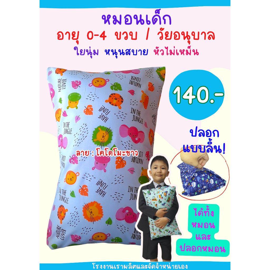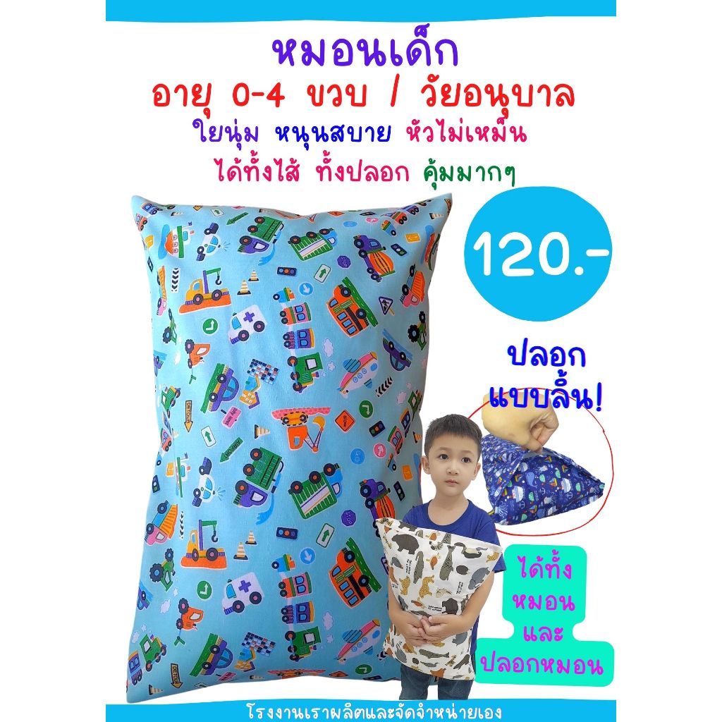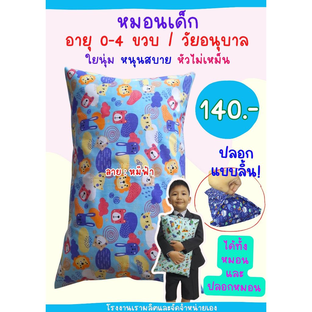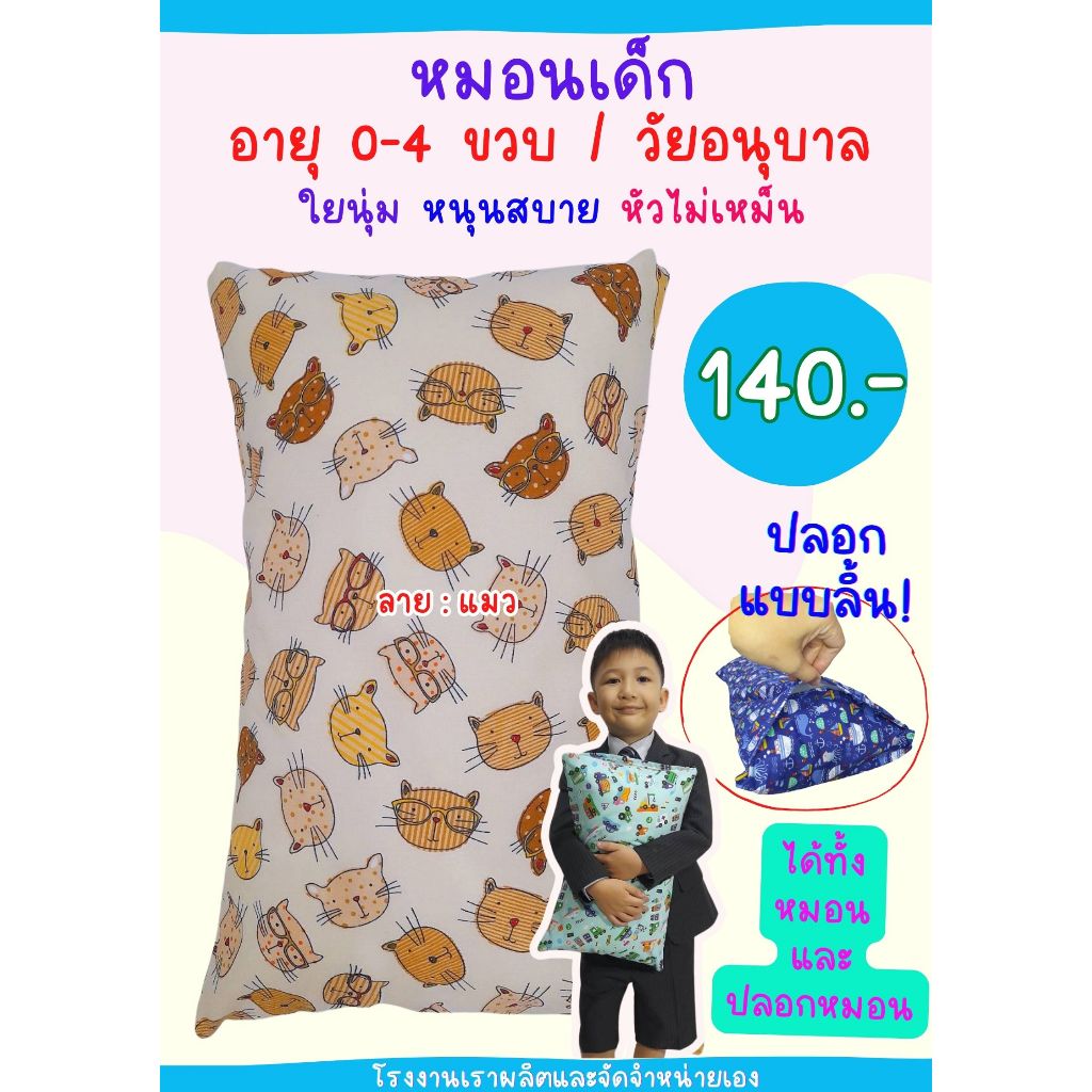 เฉพาะปลอกหมอนหนุนเด็ก 10x16 นิ้ว แบบมีลิ้น ใส่กับหมอนของทางร้าน