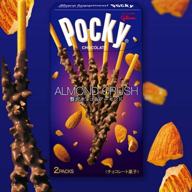 Pocky ALMOND CRUSH ป๊อกกี้ญี่ปุ่น ป๊อกกี้ อัลมอนด์ครันซ์ นำเข้า จากญี่ปุ่น 46g.(2ซอง×23g.)