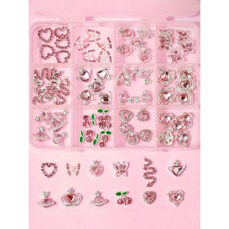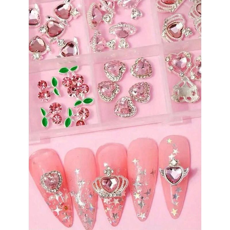 AC.1355 ร้านไทย🇹🇭🇹🇭🇹🇭ขายปลีก 1 ชิ้น สุ่มแบบ พร้อมส่ง อะไหล่แต่งเล็บสีเงินประดับเพชร Theme สีชมพู