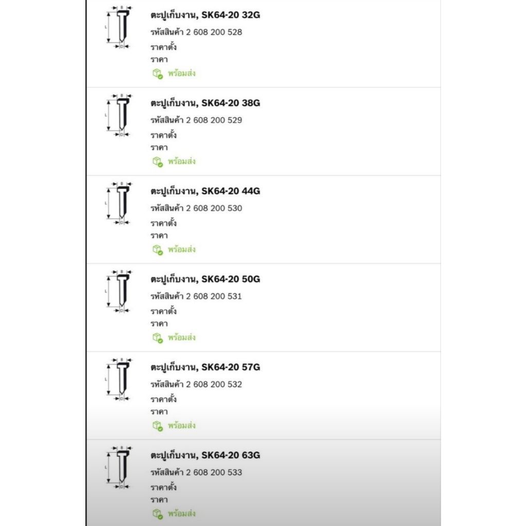 ลูกแม๊ก SK64-20 ยี่ห้อ Bosch รุ่น GNH 18V-64 มีให้เลือกหลายขนาด (2000ลูก)