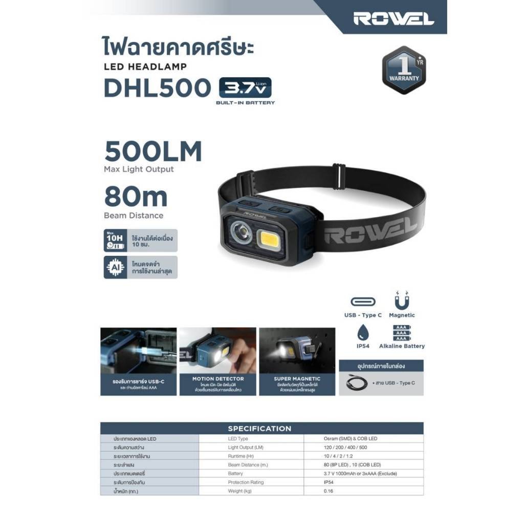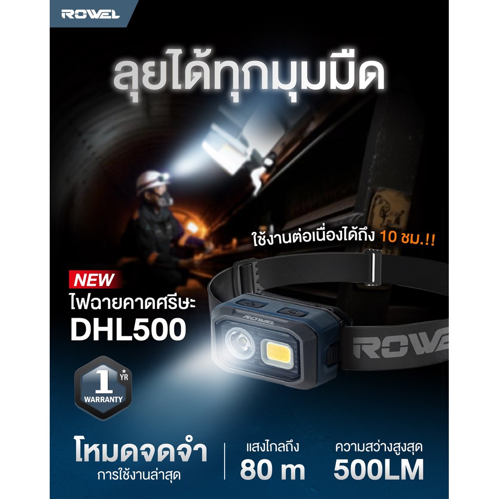 Rowel ไฟฉายคาดศีรษะ LED 500LM ROWEL รุ่น DHL500 ไฟฉายคาดหัว ไฟฉาย ไฟฉายเดินป่า แคมป์ปิ้ง อุปกรณ์ตั้งแคมป์