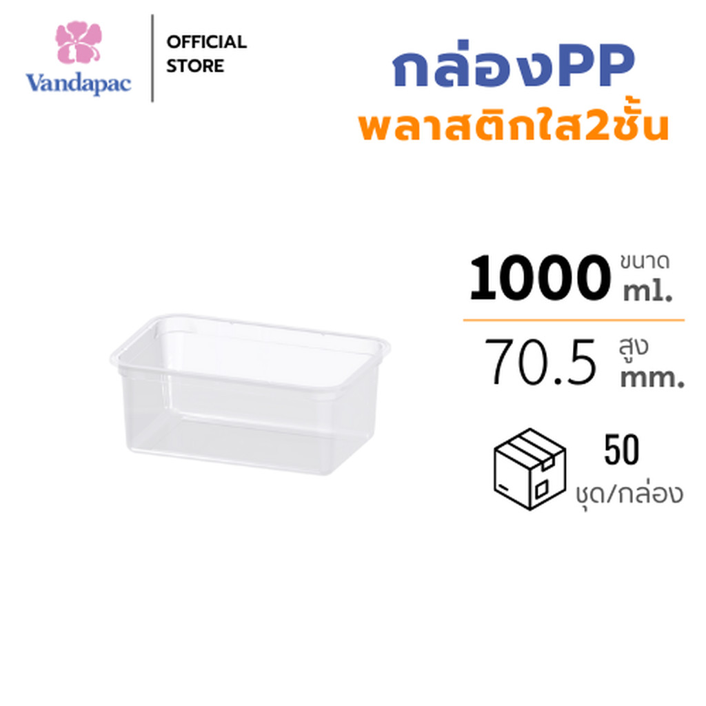 (1 กล่อง 50 ชุด) กล่องพลาสติกใส่อาหาร 2 ชั้น PP ขนาด 1,000 มล. ‼️พร้อมส่ง‼️