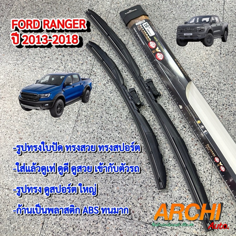 DIAMOND Wiper blade ก้านใบปัดน้ำฝน ตรงรุ่น FORD RANGER ปี2013-2018 Size 16/24” ก้านใบปัดเป็นพลาสติกคุณภาพสูง ทรงสปอร์ต