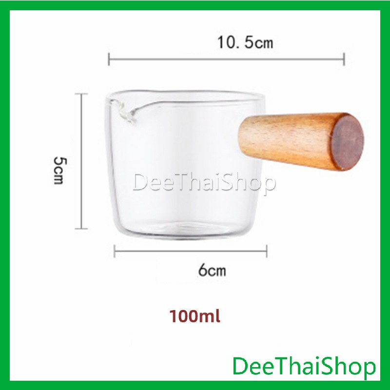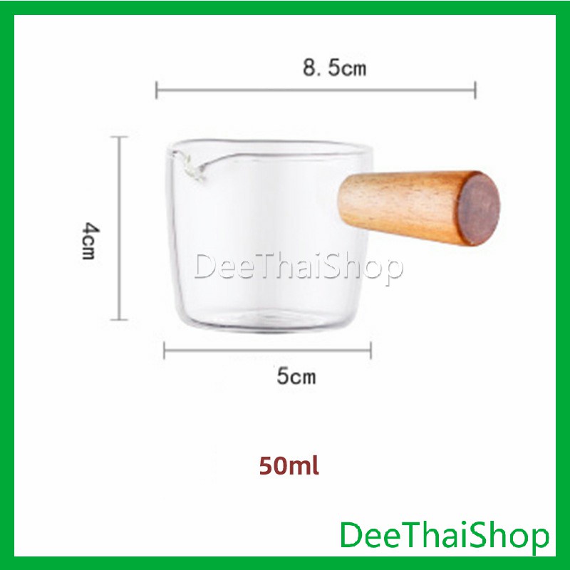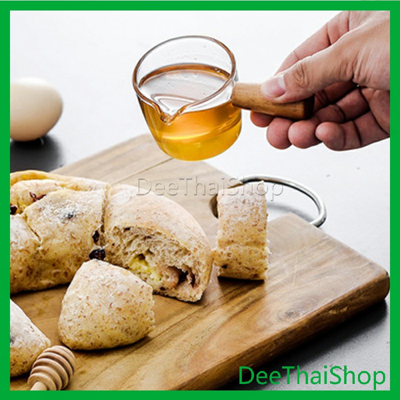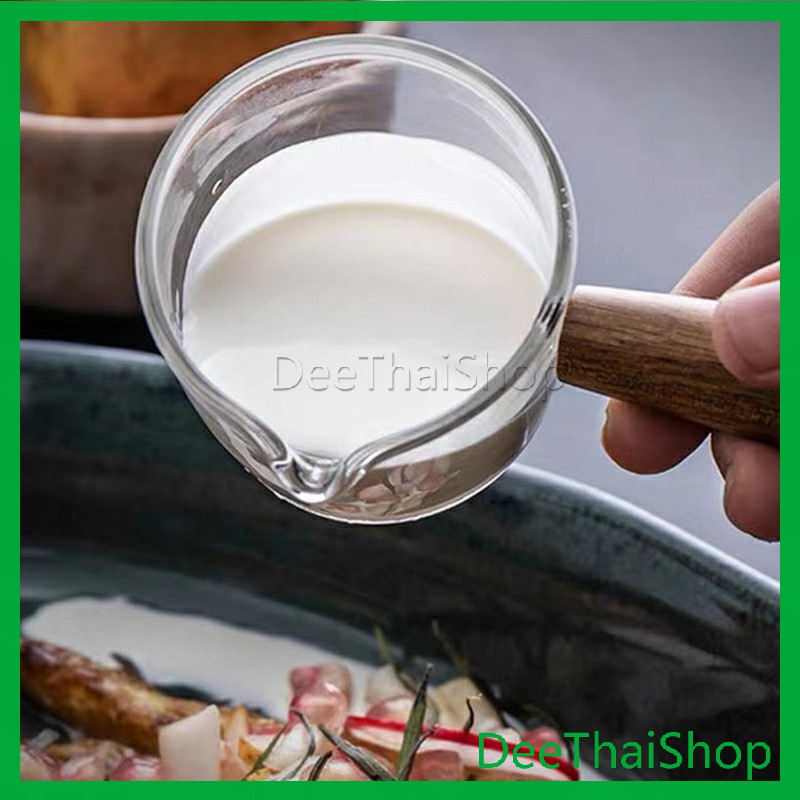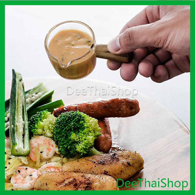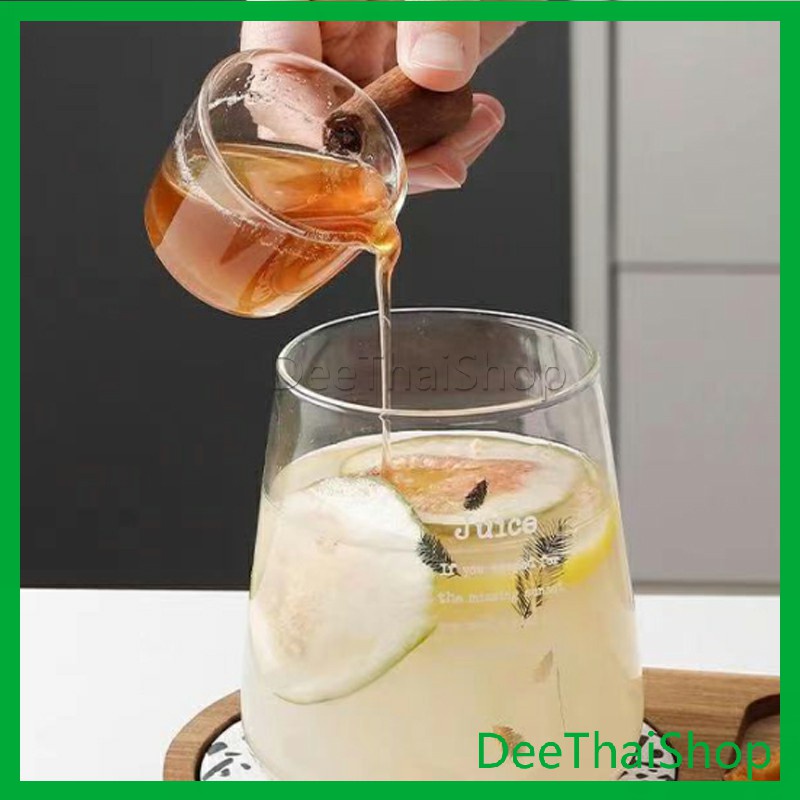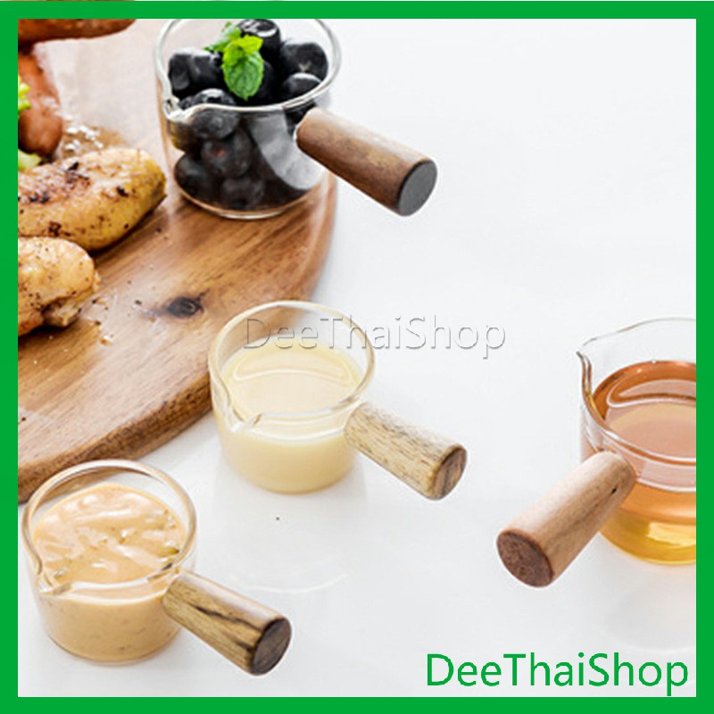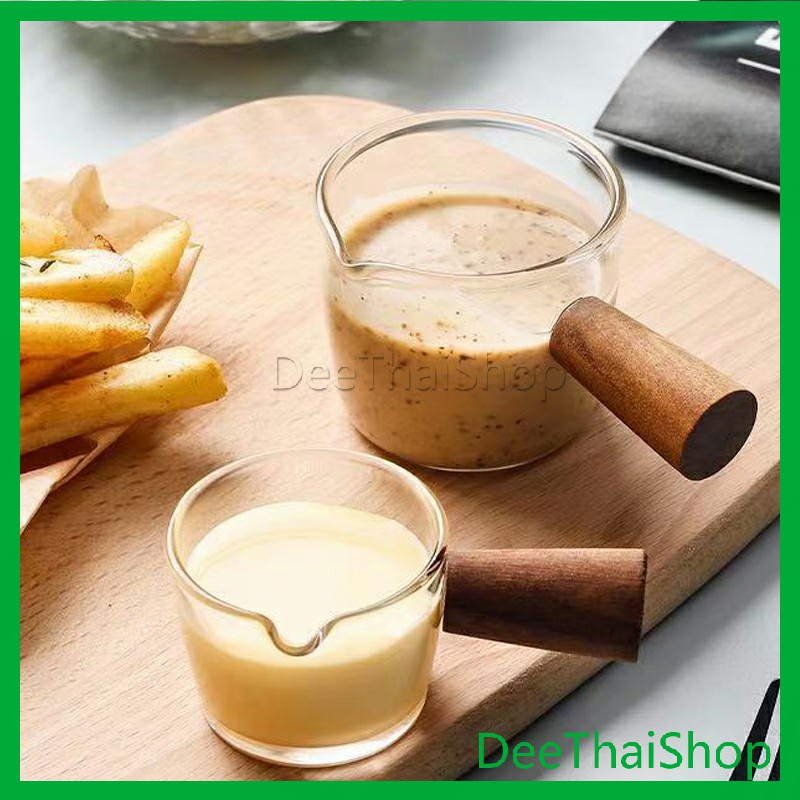 ถ้วยซอสแก้วใสทรงเหยือก เหยือกนมจิ๋ว ใส่นมข้น น้ำผึ้ง ซอสสลัด มีด้ามไม้จับ ทนความร้อน สไตล์ญี่ปุ่น Little cup