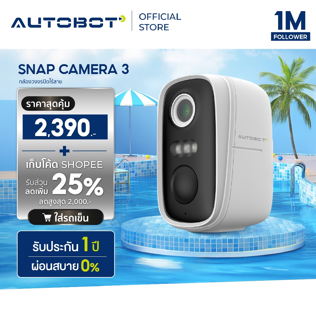 [Pre-order] 𝗔𝗨𝗧𝗢𝗕𝗢𝗧 x Meari รุ่น N1 Snap 3 Megapixel Security Camera กล้องวงจรปิด จับคลิปเคลื่อนไหว ไม่ง้อสายไฟ