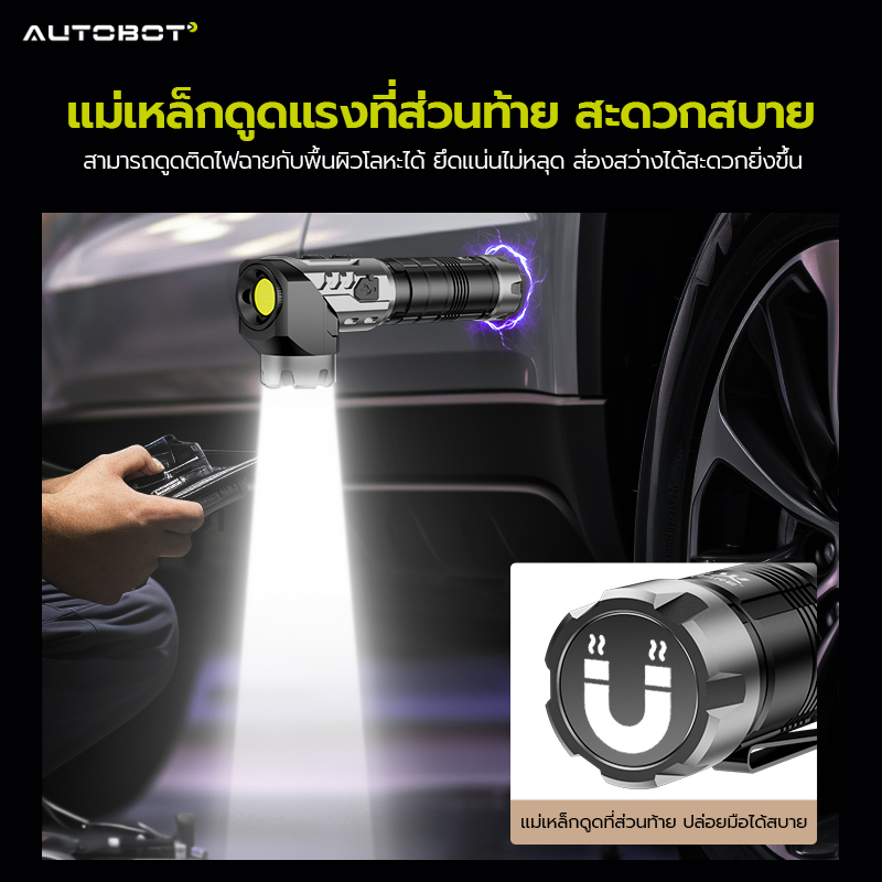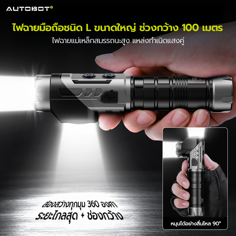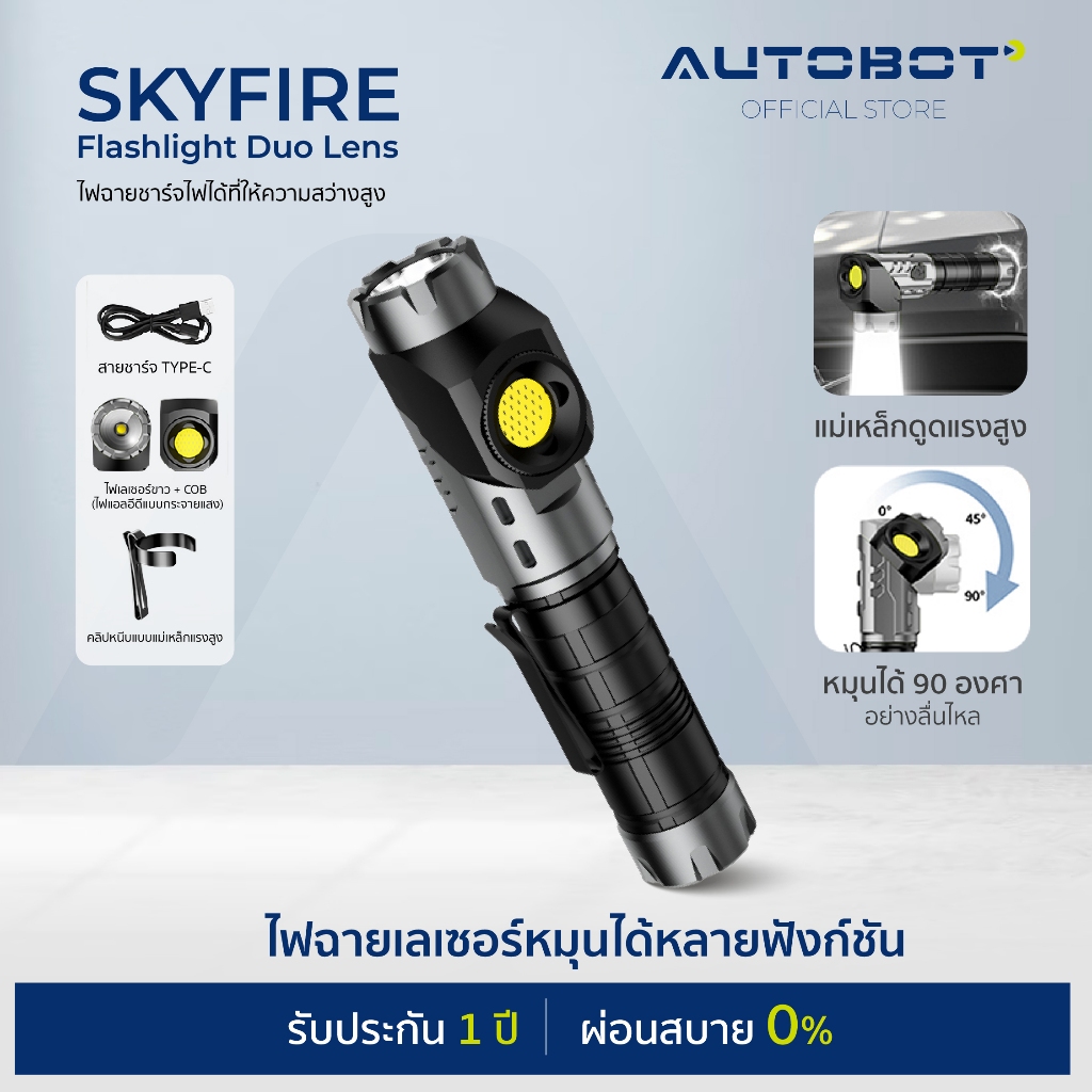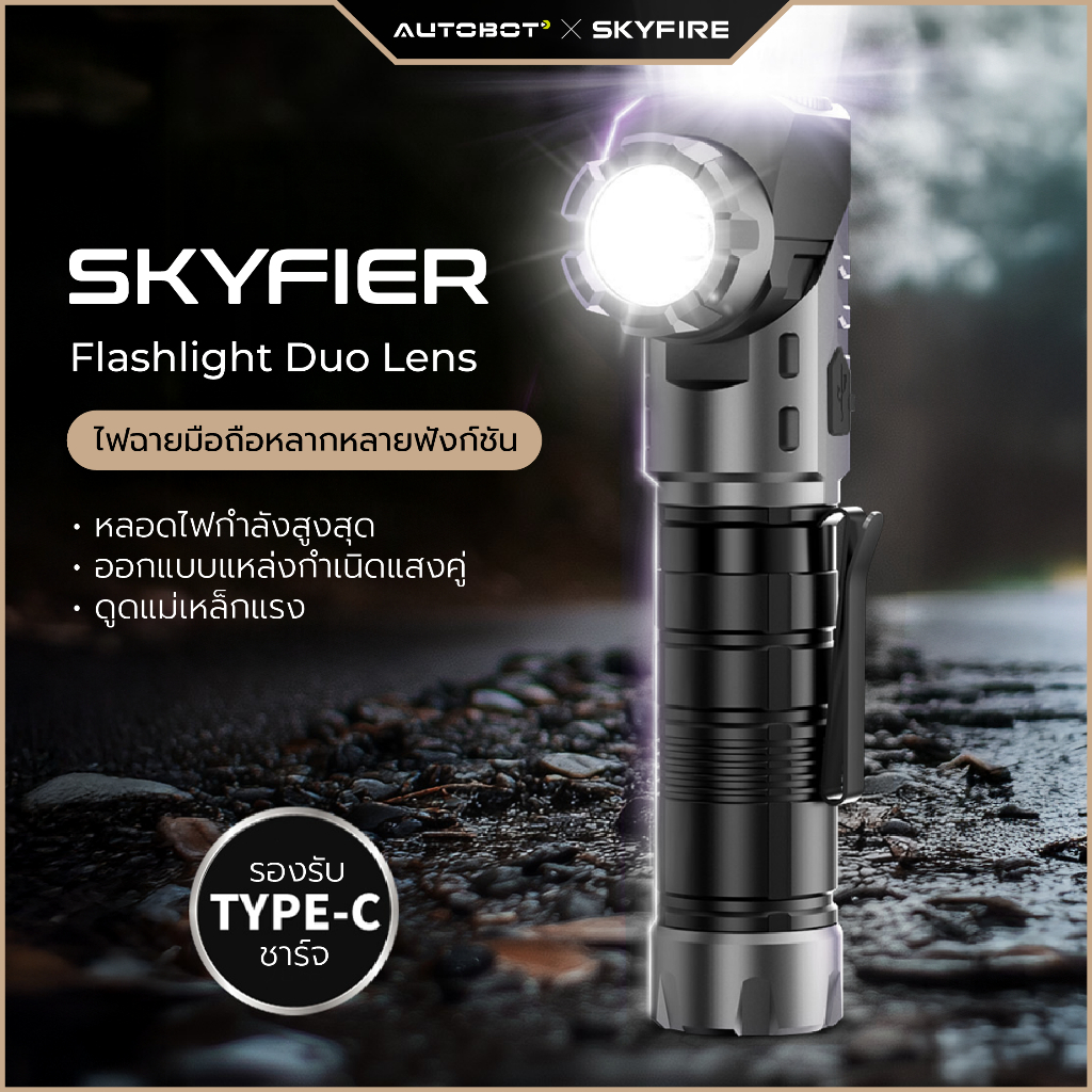 𝗔𝗨𝗧𝗢𝗕𝗢𝗧 ไฟฉาย FlashLight Duo Lens Magnet กันน้ำ ชาร์จแบตด้วย Type C ใช้งานได้ทุกสถานการณ์ by Skyfire