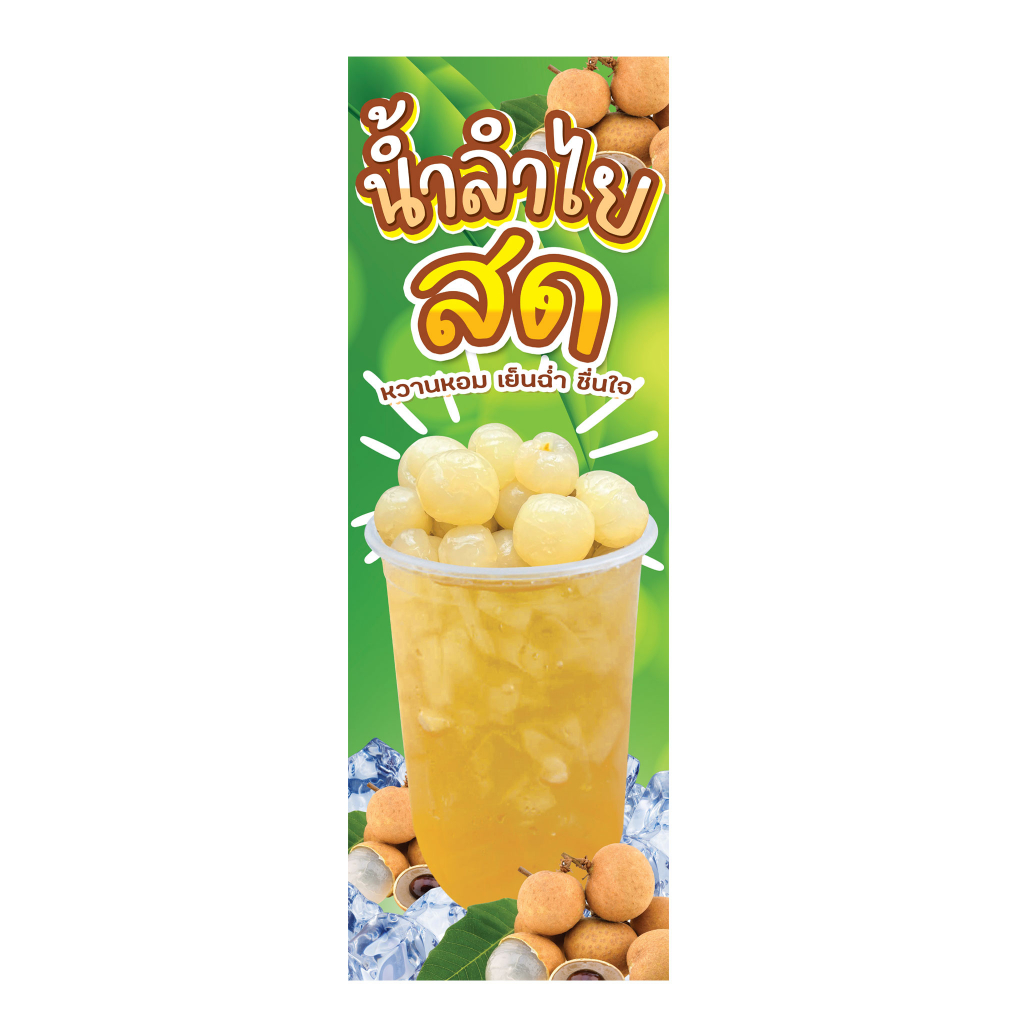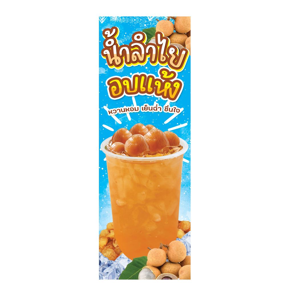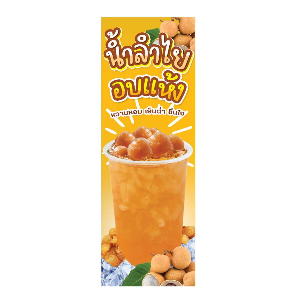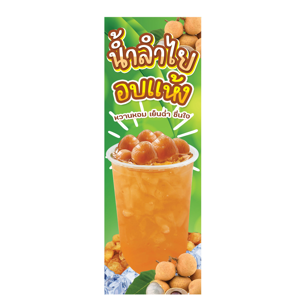 ป้ายน้ำลำไย น้ำลำไยสด น้ำลำไยอบแห้ง ป้ายไวนิลธงญี่ปุ่น ป้ายJ-flag ไม่รวมขาเหล็ก