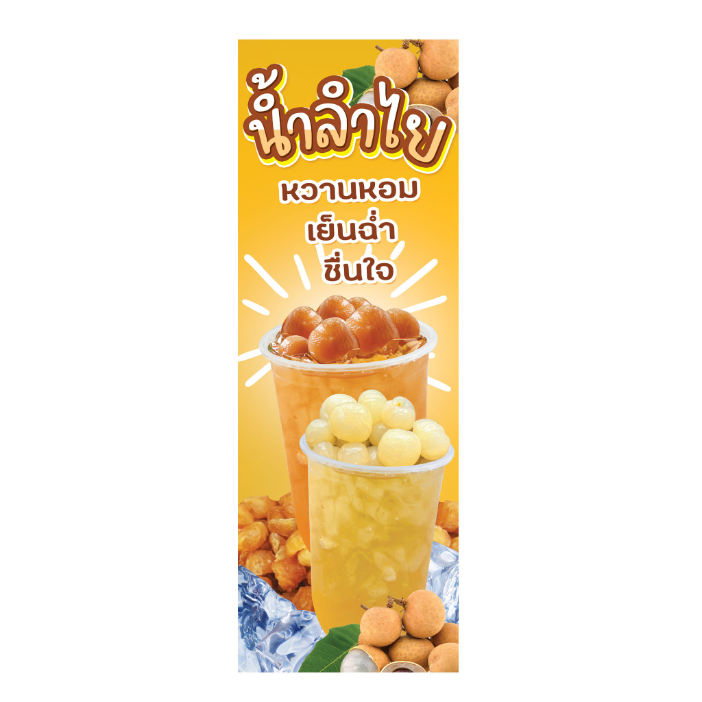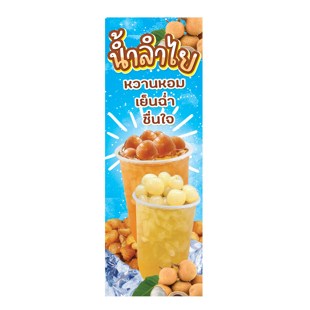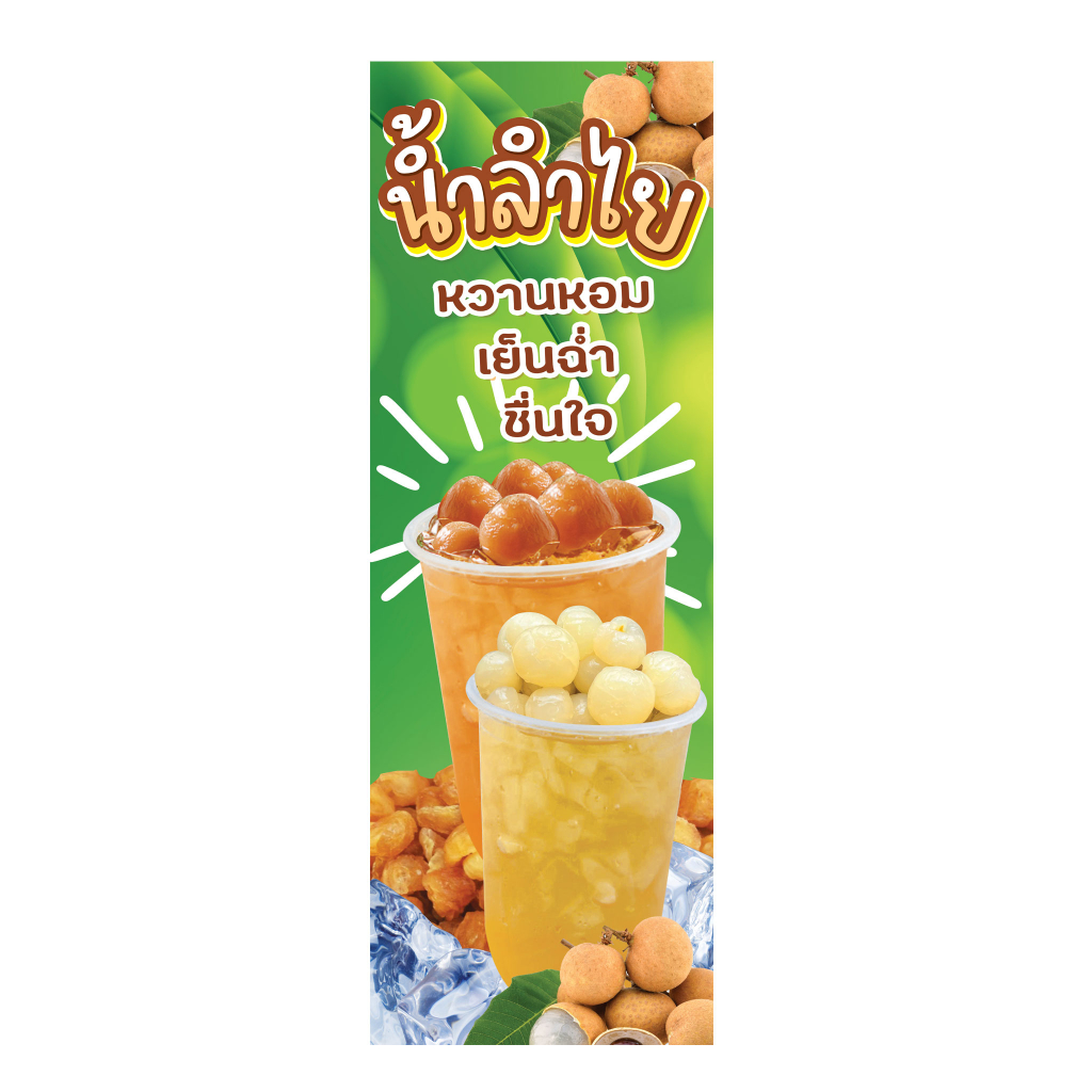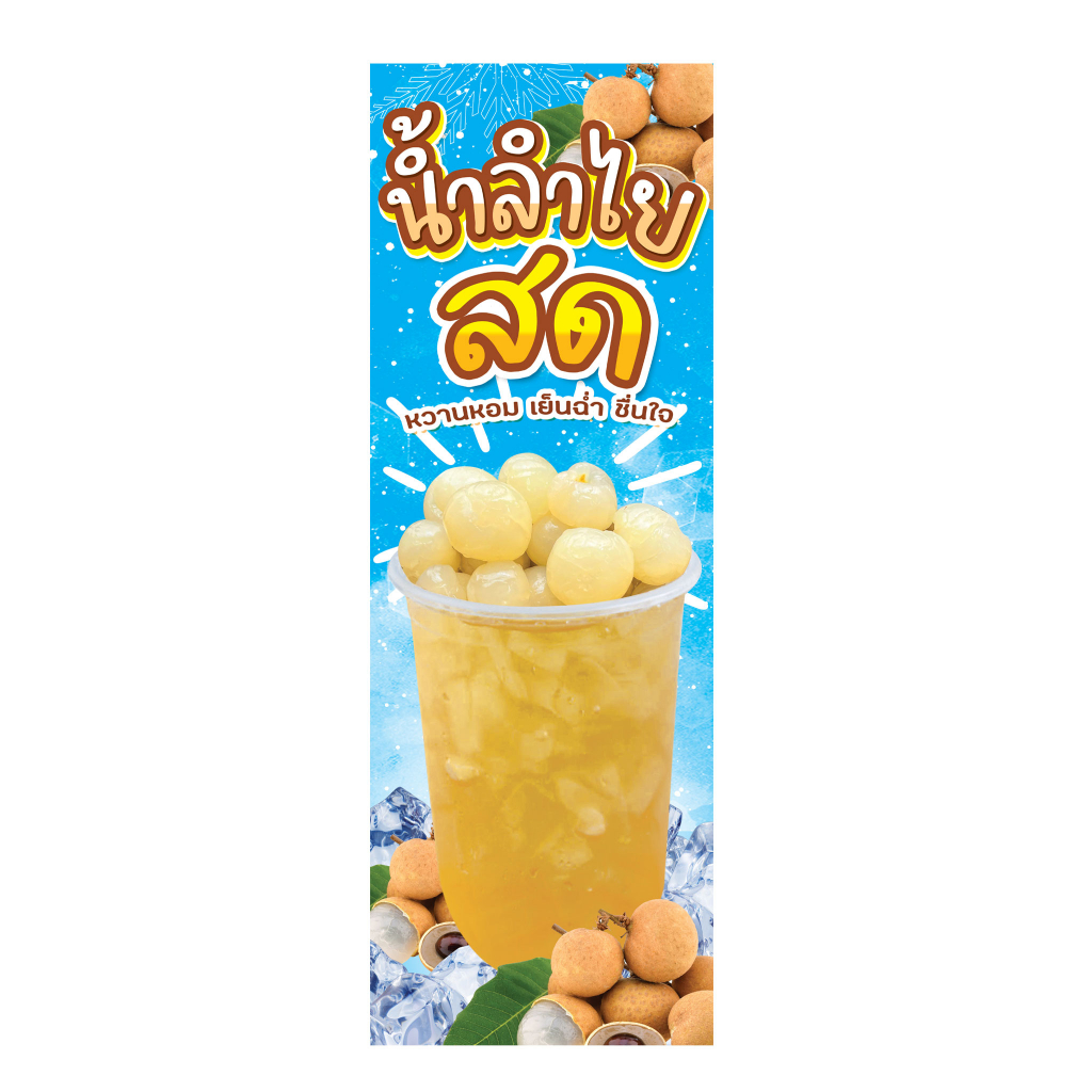 ป้ายน้ำลำไย น้ำลำไยสด น้ำลำไยอบแห้ง ป้ายไวนิลธงญี่ปุ่น ป้ายJ-flag ไม่รวมขาเหล็ก