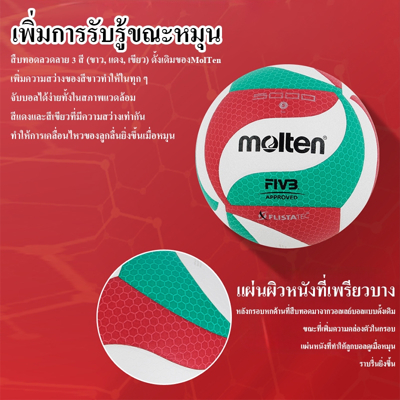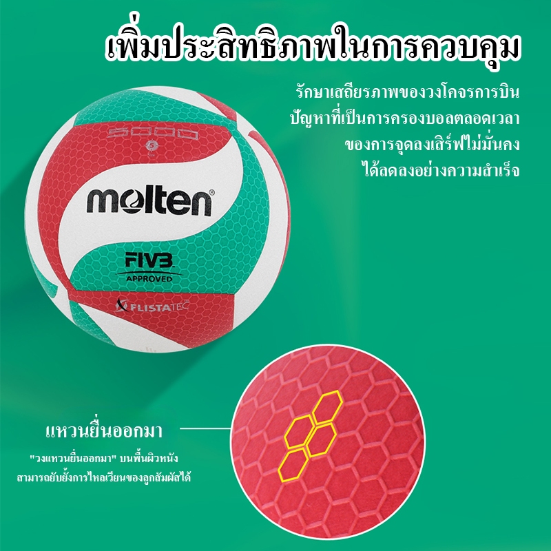 Molten วอลเลย์บอล ลูกบอล วัสดุPVC/ซุปเปอร์ไฟเบอร์ ลูกวอลเลย์บอล Volleyball ไซส์ 5 ลูก ไม่เจ็บมือ กันเหงื่อกันเลื่อน