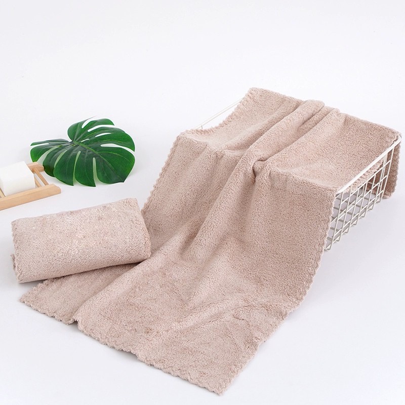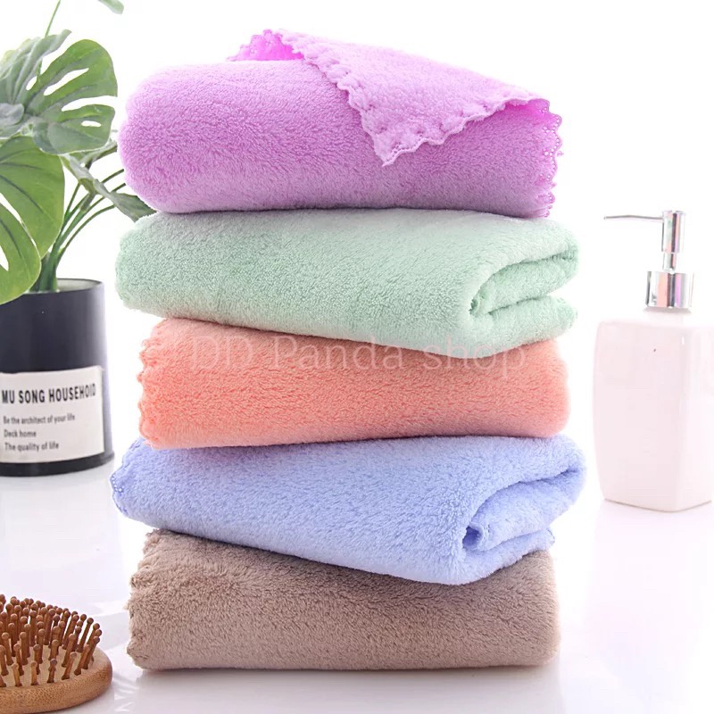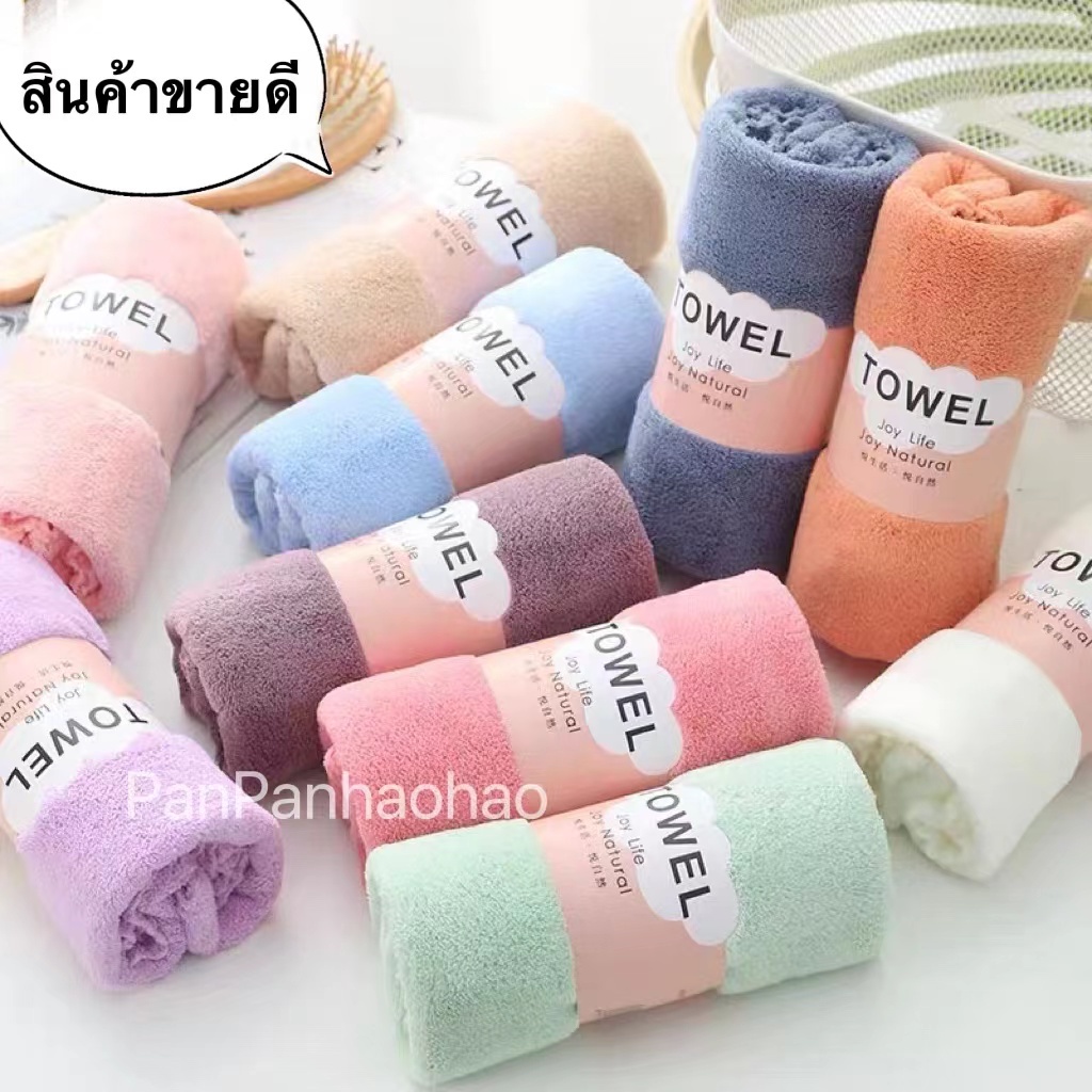 ผ้าขนหนู ผ้าเช็ดหน้า 35x75cm สีพื้น ขอบหยัก ซับได้ดีเยี่ยม พร้อมส่ง