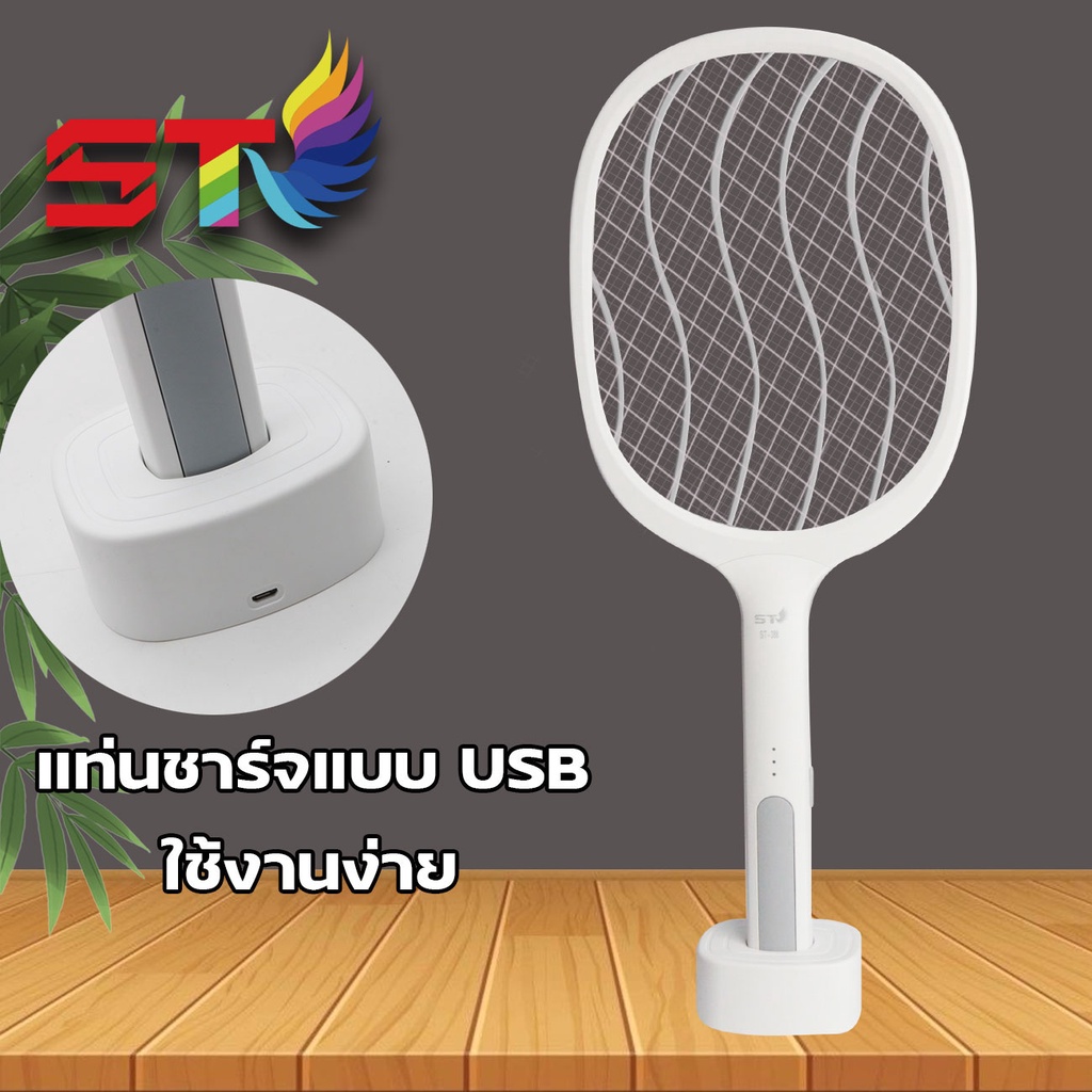 STไม้ช็อตยุง ST-388 ไม้ช็อตยุงไฟฟ้า ที่ดักยุงไม้ตียุงไฟฟ้า 3000V (พร้อมสายUSBและแท่นวางชาร์จ)