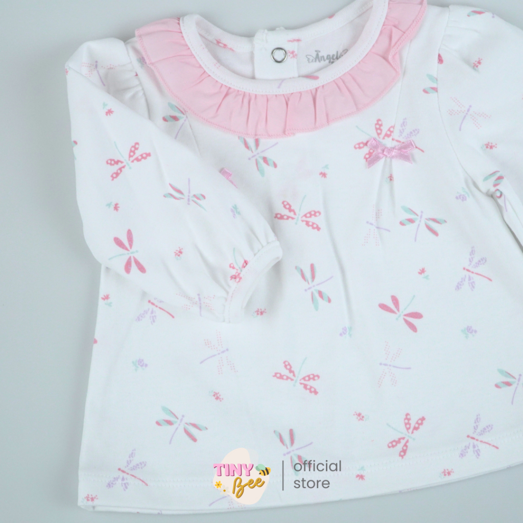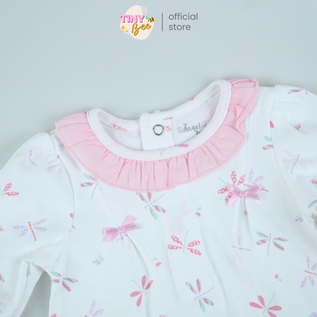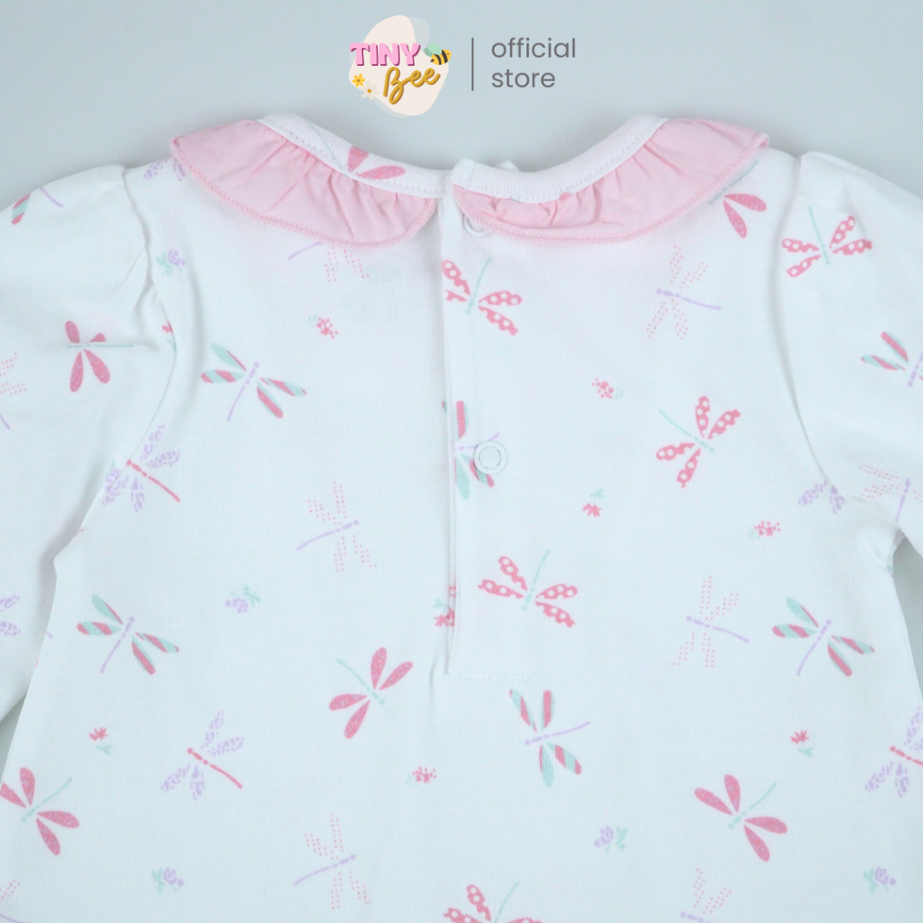 TinyBee ชุดเซ็ตเสื้อผ้าฝ้าย Cotton 100% พร้อมกางเกง ชุดเด็กผู้หญิง ลายแมลงปอ อายุ 3-24 เดือน
