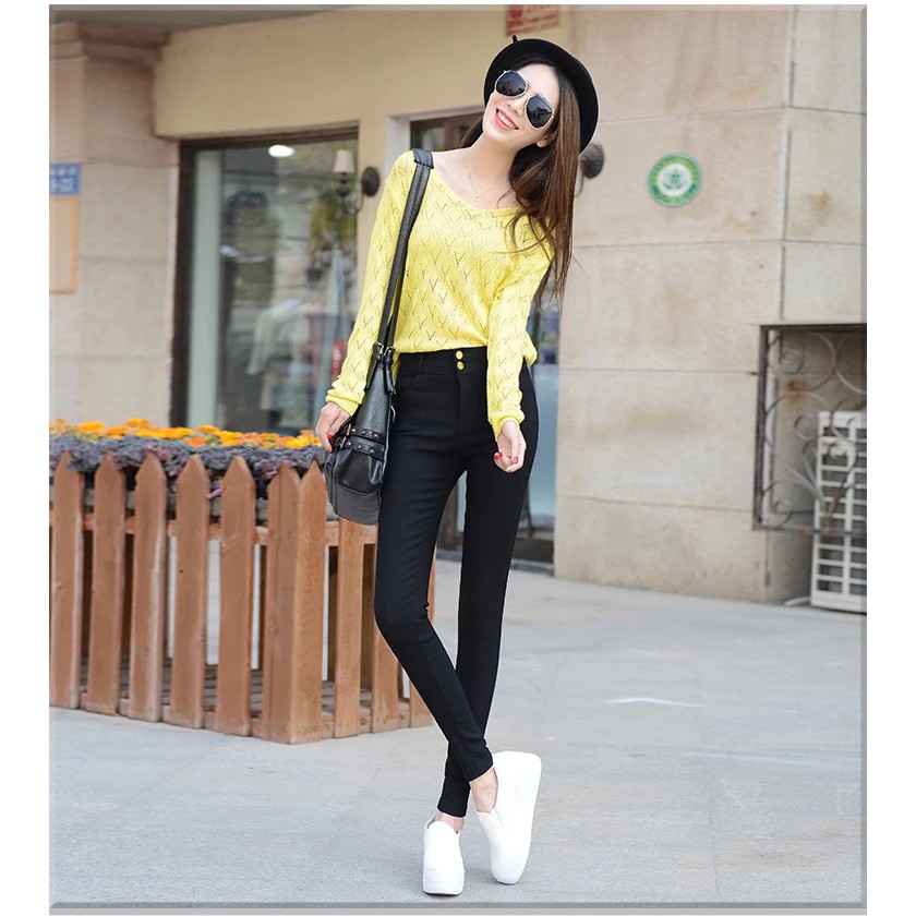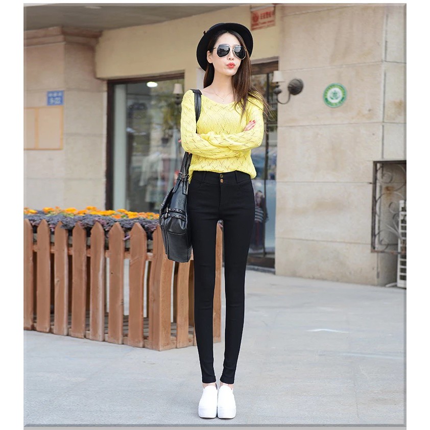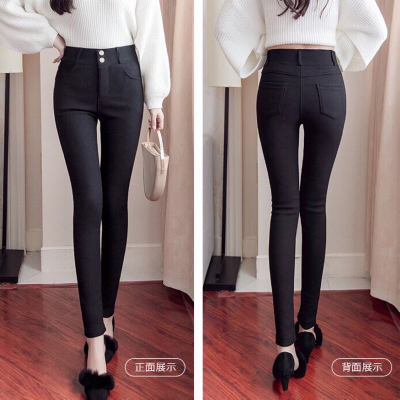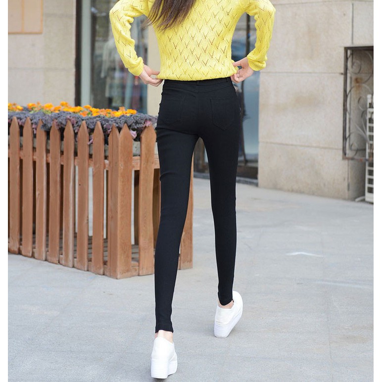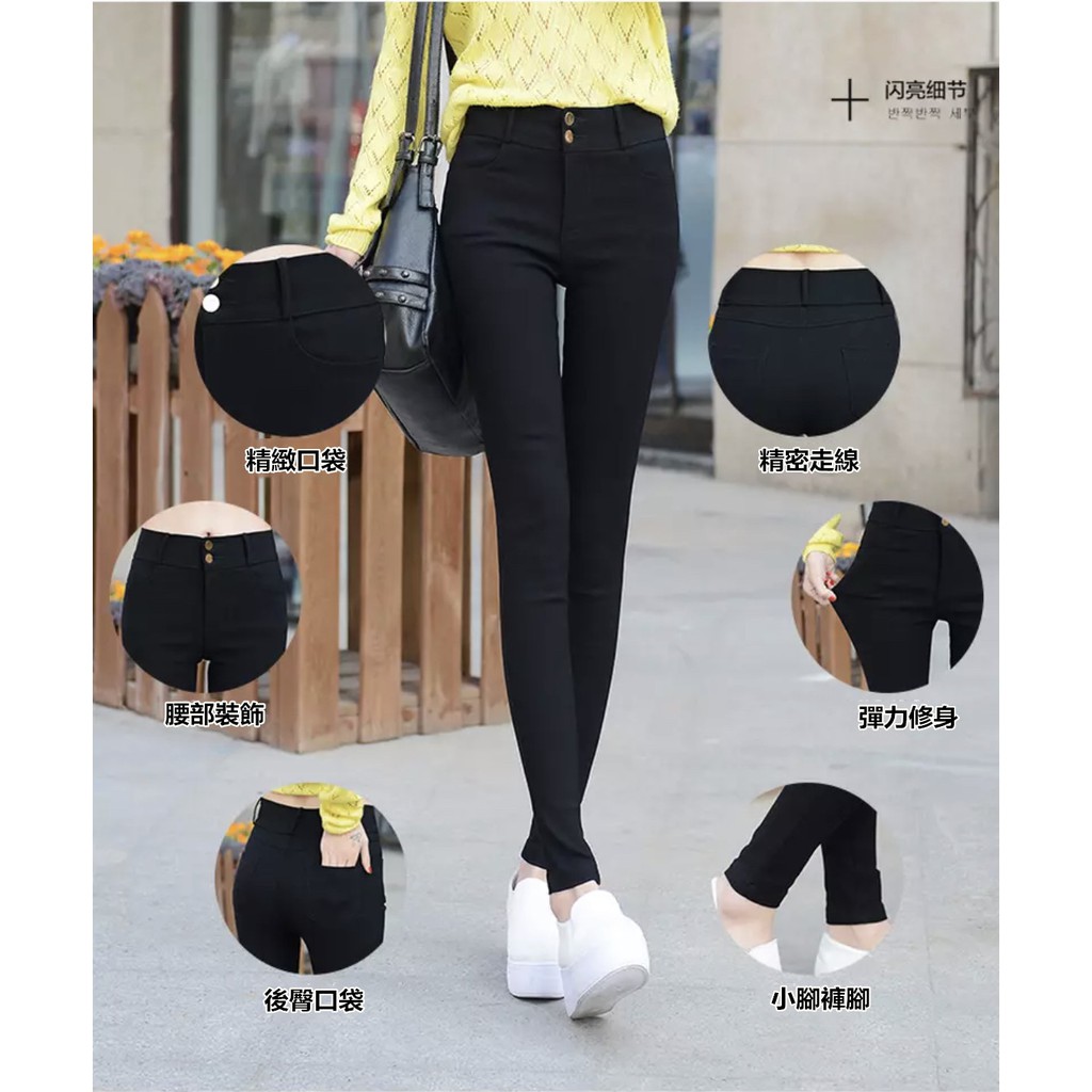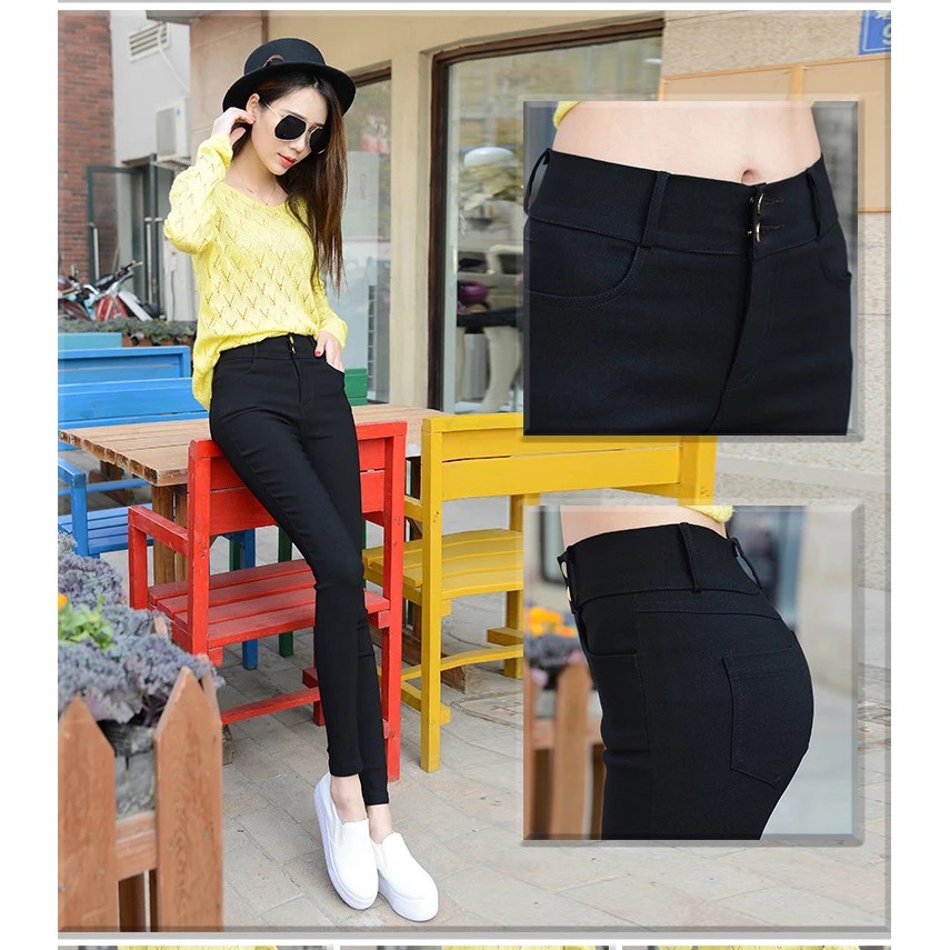 [พร้อมส่ง] กางเกงขายาว เอวสูง ผ้ายืด สีดํา ทรงสกินนี่ ขนาดเล็ก สไตล์เกาหลี