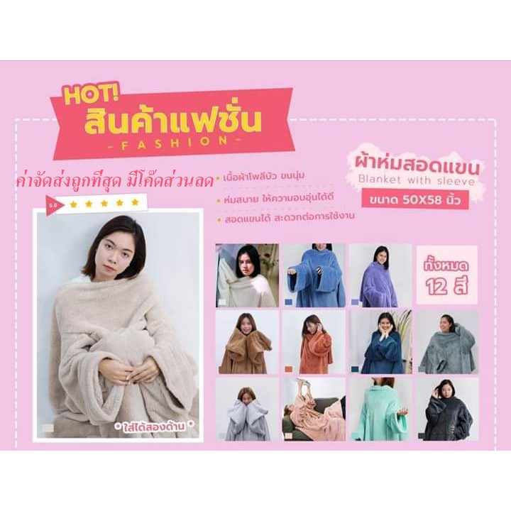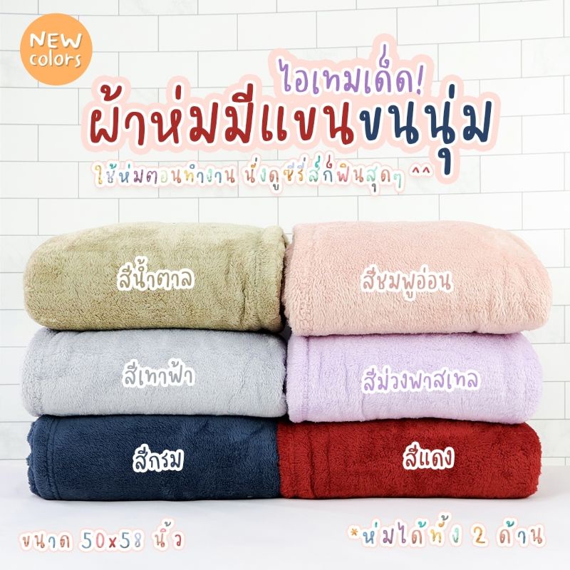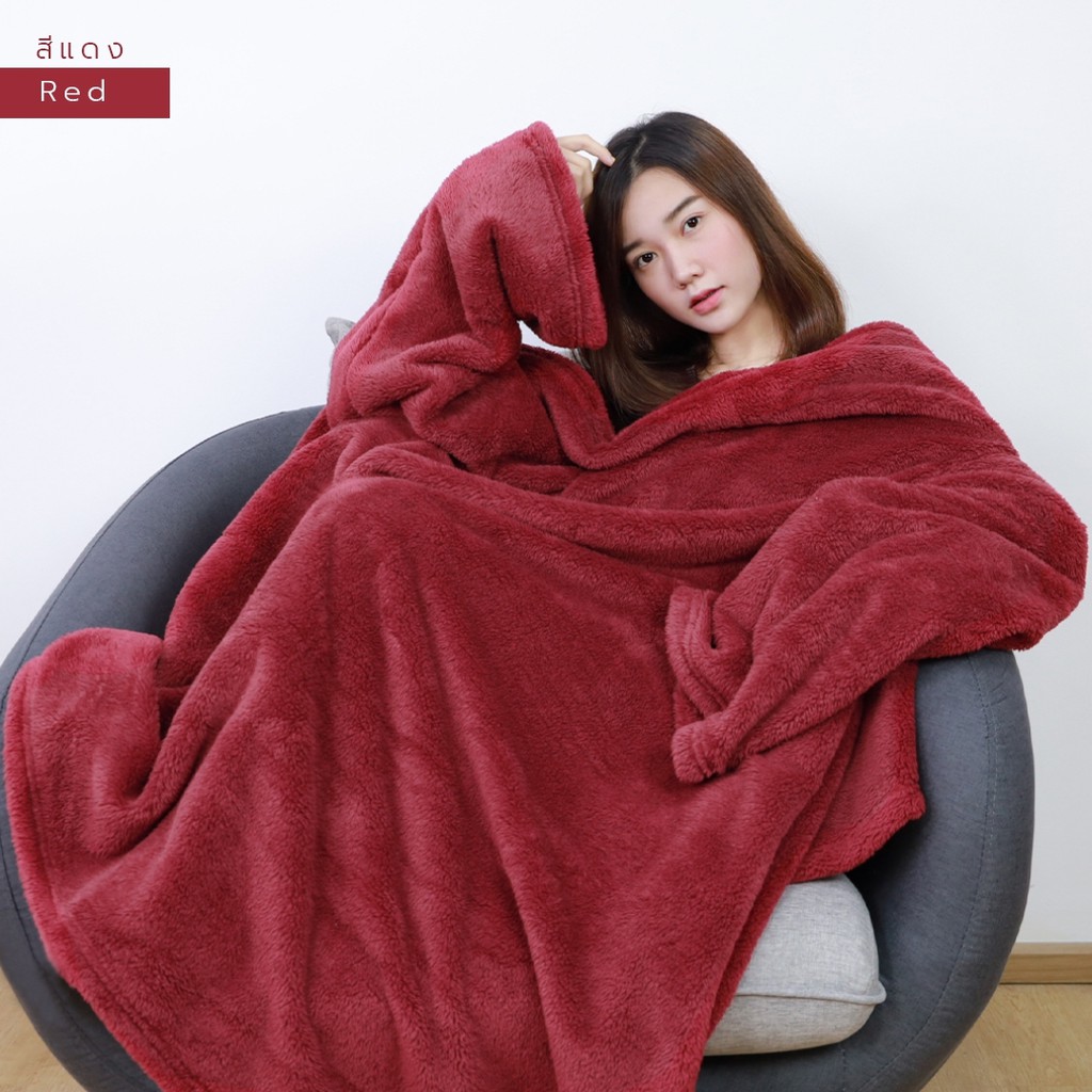 🔥🔥ผ้าห่มมีแขน ผ้าห่มสอดแขน เป็นเนื้อผ้าโพลีบัว ขนนุ่ม 50x58 นิ้ว มีให้เลือกหลายสี🔥🔥