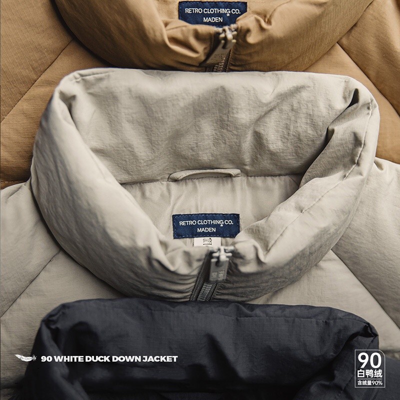 สไตล์ทํางานย้อนยุคผู้ชายเยาวชนยุโรปและอเมริกาการท่องเที่ยวอเมริกันสบายๆยืนปก90เป็ดสีขาวลงแจ็คเก็ตกลางแจ้ง กันลม ขนมปังแจ็คเก็ตแจ็คเก็ตอบอุ่น