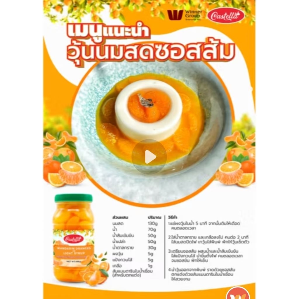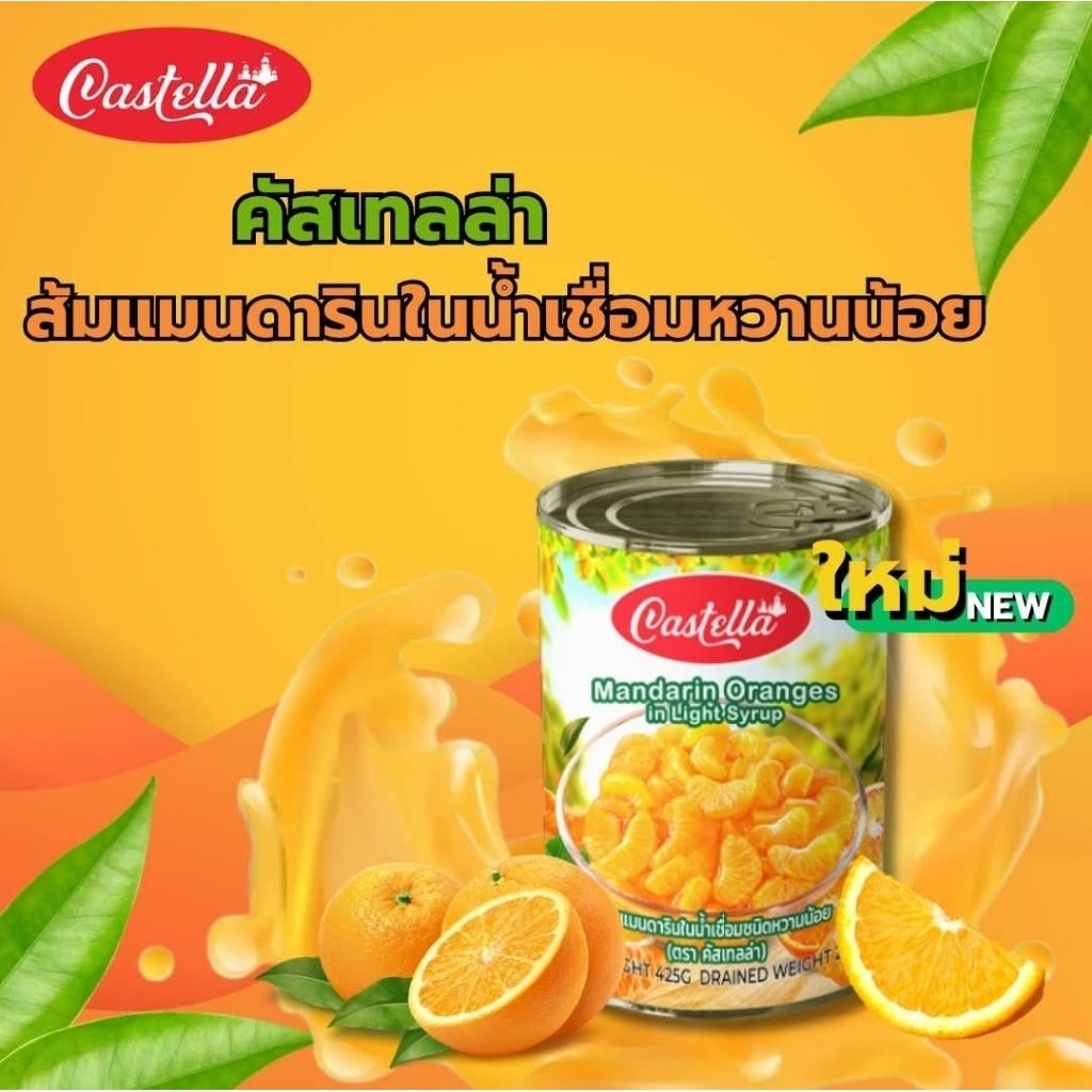 Castella mandarin oranges ส้มแมนดารินในน้าเชื่อมชนิดหวานน้อยขนาด 425 กร้ม