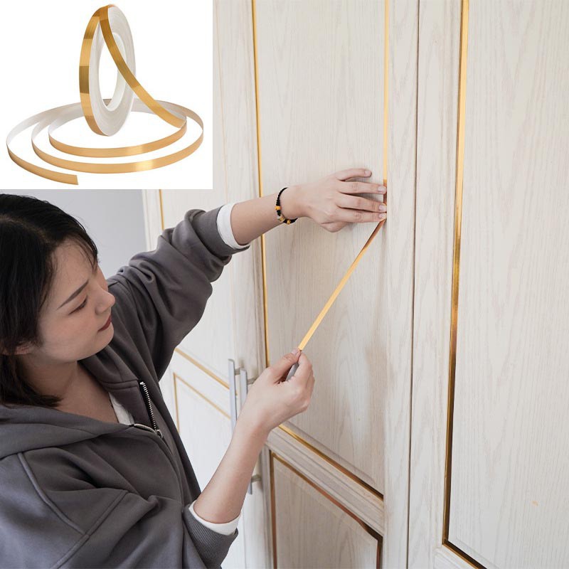 สติกเกอร์ติดผนัง กันน้ํา กรอบสีทอง สีเงิน ยาว 20 เมตร สําหรับตกแต่งตู้เสื้อผ้า DIY