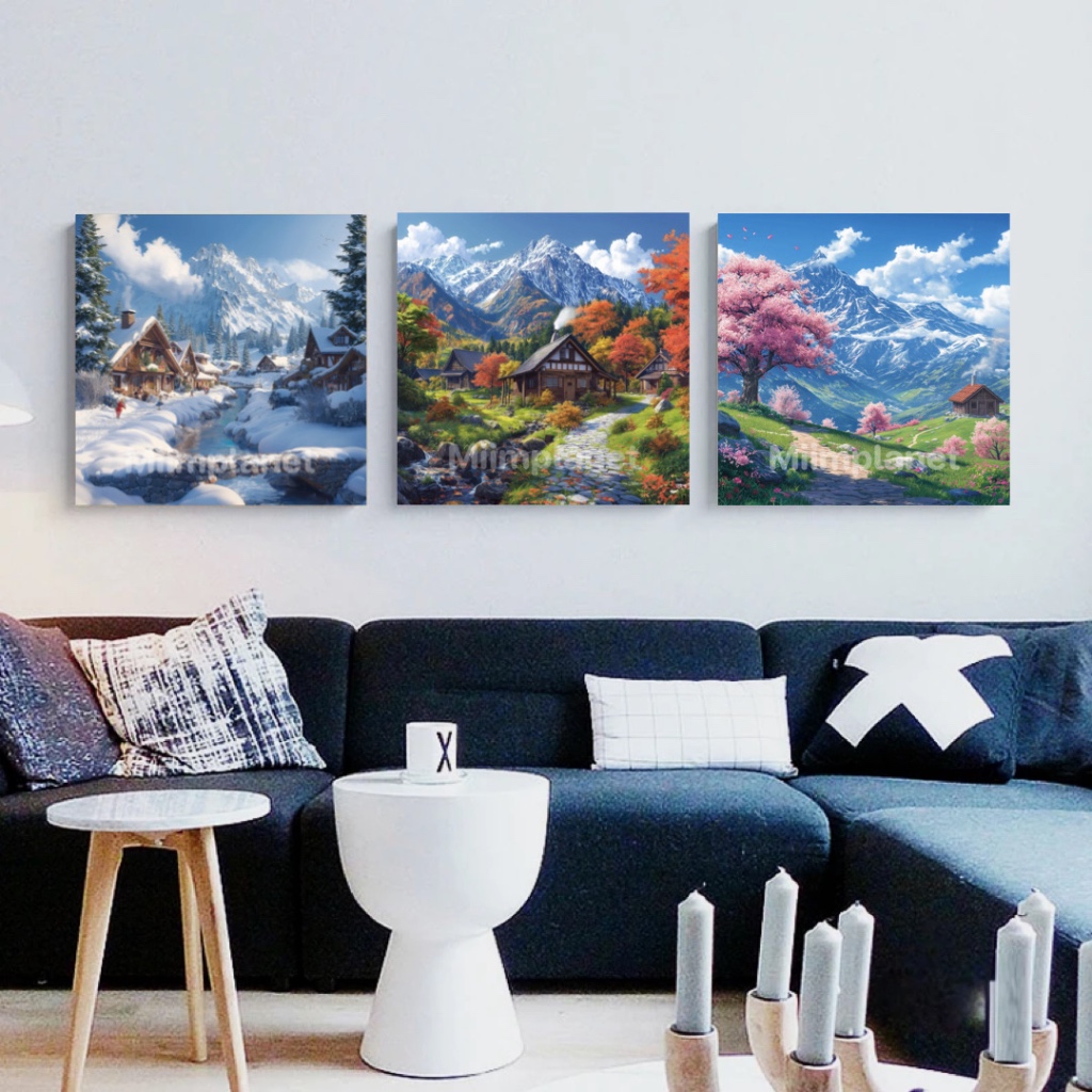 พร้อมส่ง🇹🇭 ภาพติดเพชรคริสตัล เม็ดเหลี่ยม 💎 5D DIY Square Diamond Painting ครอสติสคริสตัล จัตุรัส ธรรมชาติ แต่งบ้าน