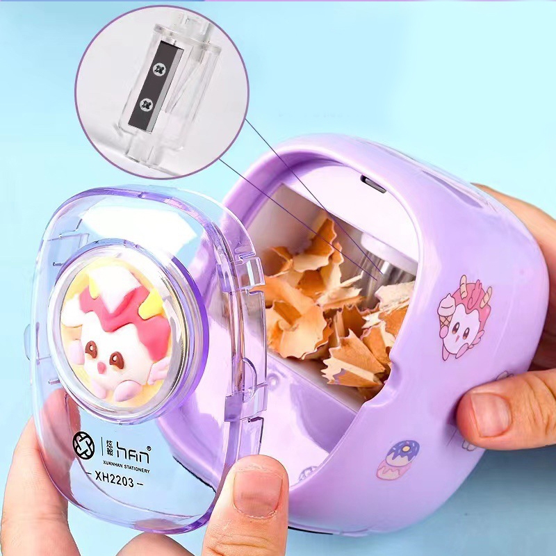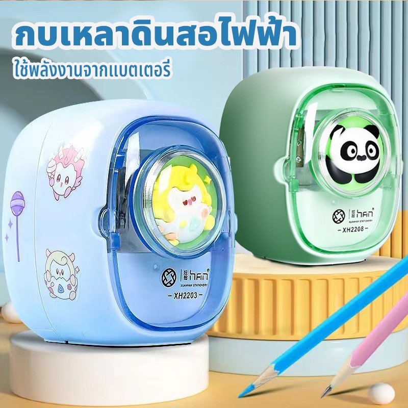 🔥จัดส่งภายใน 24 ชั่วโมง🔥เครื่องเหลาดินสอไฟฟ้า การลับคมอัตโนมัติ ลายการ์ตูนน่ารัก แถมสติ๊กเกอร์ DIY แถม อะไหล่ใบมีด 1 อัน