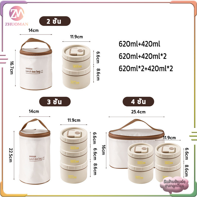 ปิ่นโตใส่อาหาร ปิ่นโต กล่องใส่ข้าว กล่องอาหารกลางวัน 2/3/4 ชั้น สแตนเลส304 มาพร้อมกระเป๋าเก็บอุณหภูมิ เก็บร้อนได้นาน