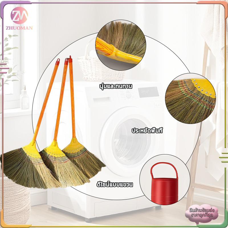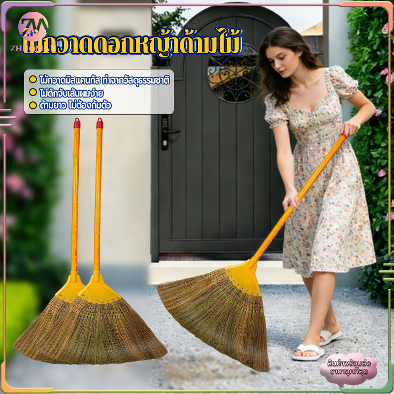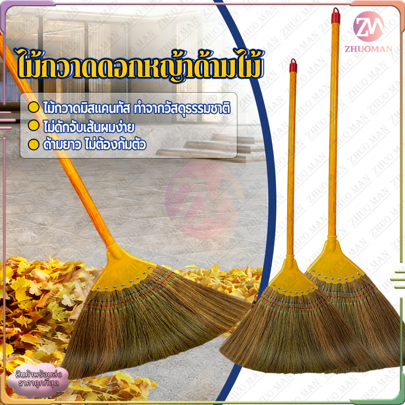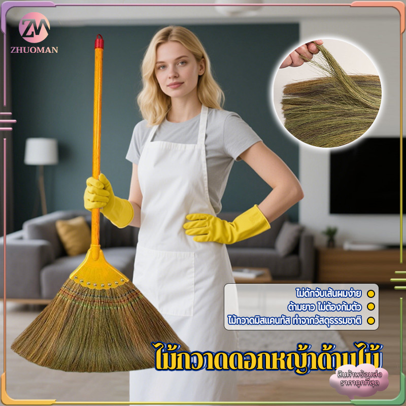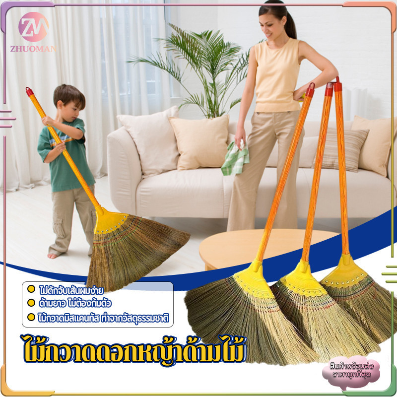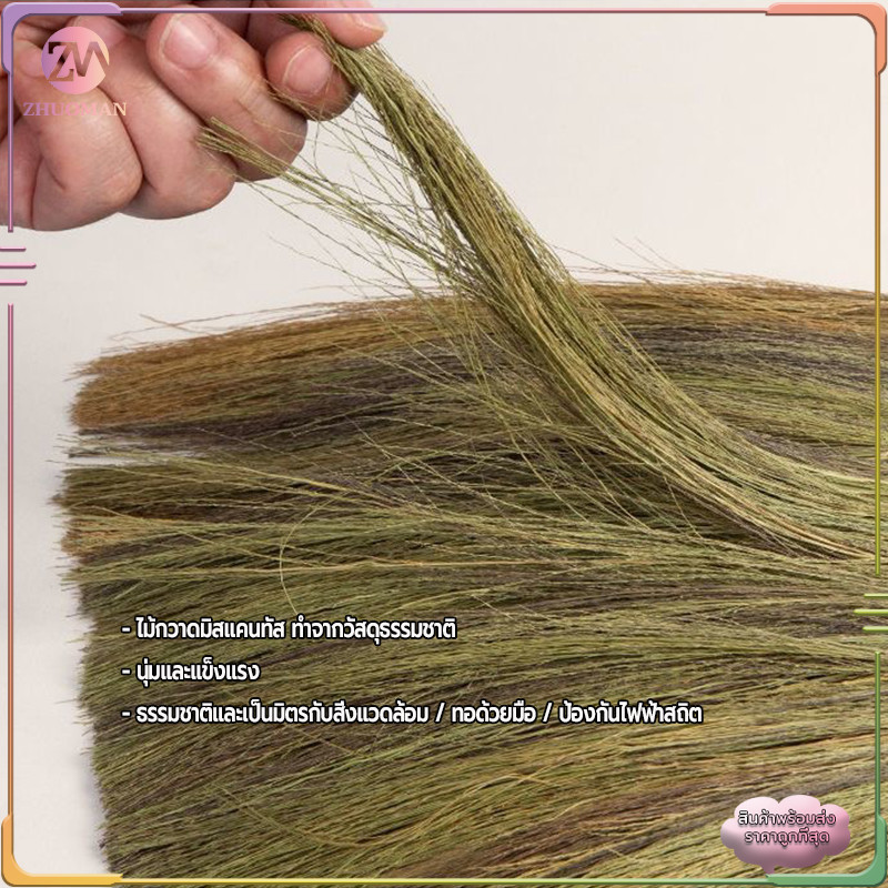 ไม้กวาดดอกหญ้าทำมือ ไม้กวาดดอกหญ้า ไม้กวาดดอกหญ้ารุ่น หนาพิเศษทากาว ขนไม้กวาดแน่น กำจัดฝุ่นได้ดี แข็งแรงทนทาน น้ำหนักเบา