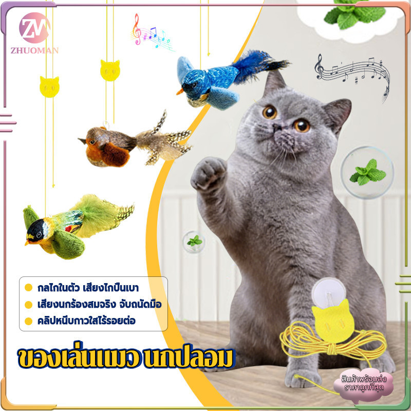 ของเล่นแมว นกปลอม ของเล่นแมวแบบโต้ตอบ ไม้ตกแมว ของเล่นนกจำลองเสียงร้อง รูปนกตลก มีเสียง ของเล่นสัตว์เลี้ยง