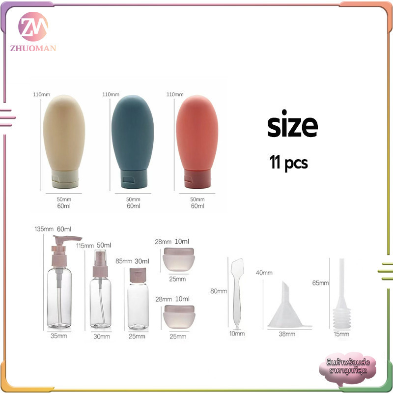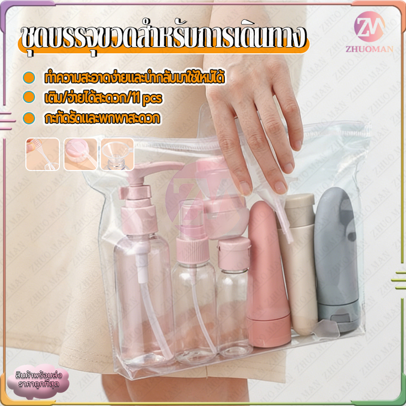 ชุดขวดเดินทาง 11ชิ้น ชุดบรรจุขวดสําหรับการเดินทาง ชุดขวดรีฟิล ขวดสเปรย์เปล่า ขึ้นเครื่องได้ เหมาะกับการเดินทาง