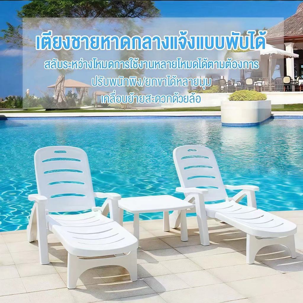 เก้าอี้ชายหาด เก้าอี้ชายหาดพับได้กลางแจ้ง เตียงนอน พลาสติก สำหรับ ริมสระน้ำ ชายหาด เตียงนอนสระน้ำพลาสติก