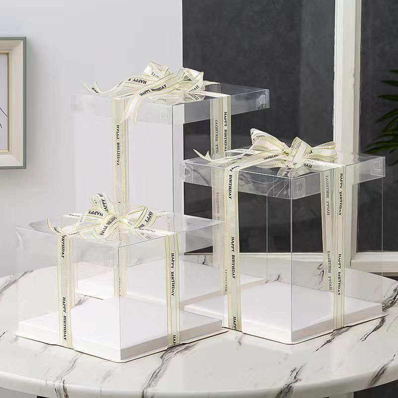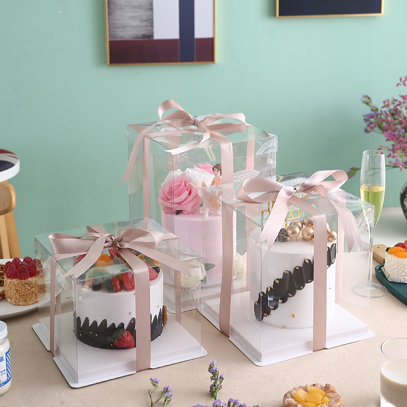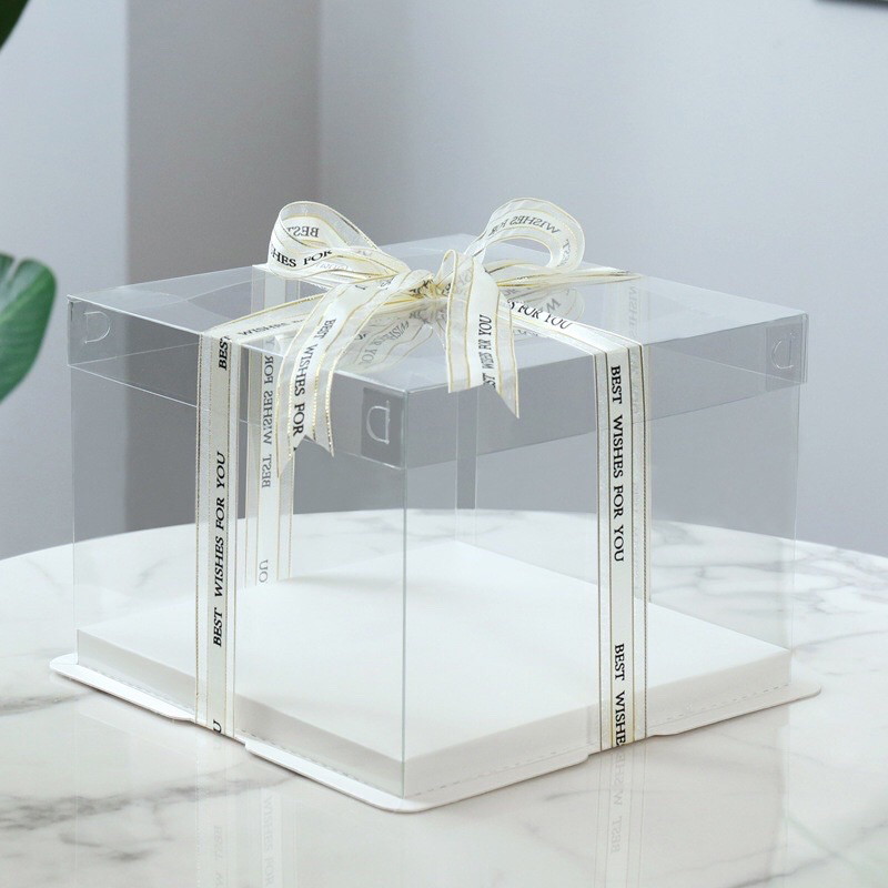กล่องเค้กใสทรงสูง ฐานสีขาว มีขนาดครึ่งปอนด์ 4นิ้ว (ราคาต่อใบ)