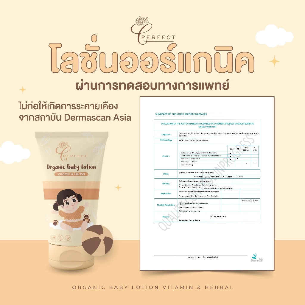 PERFECT Organic Baby Lotion โลชั่นเด็กออร์แกนิค บำรุงผิวขาวกระจ่างใส แก้ขาลาย ขนาด 100 ml หลอดเหลือง