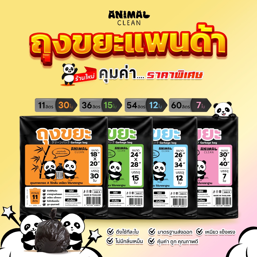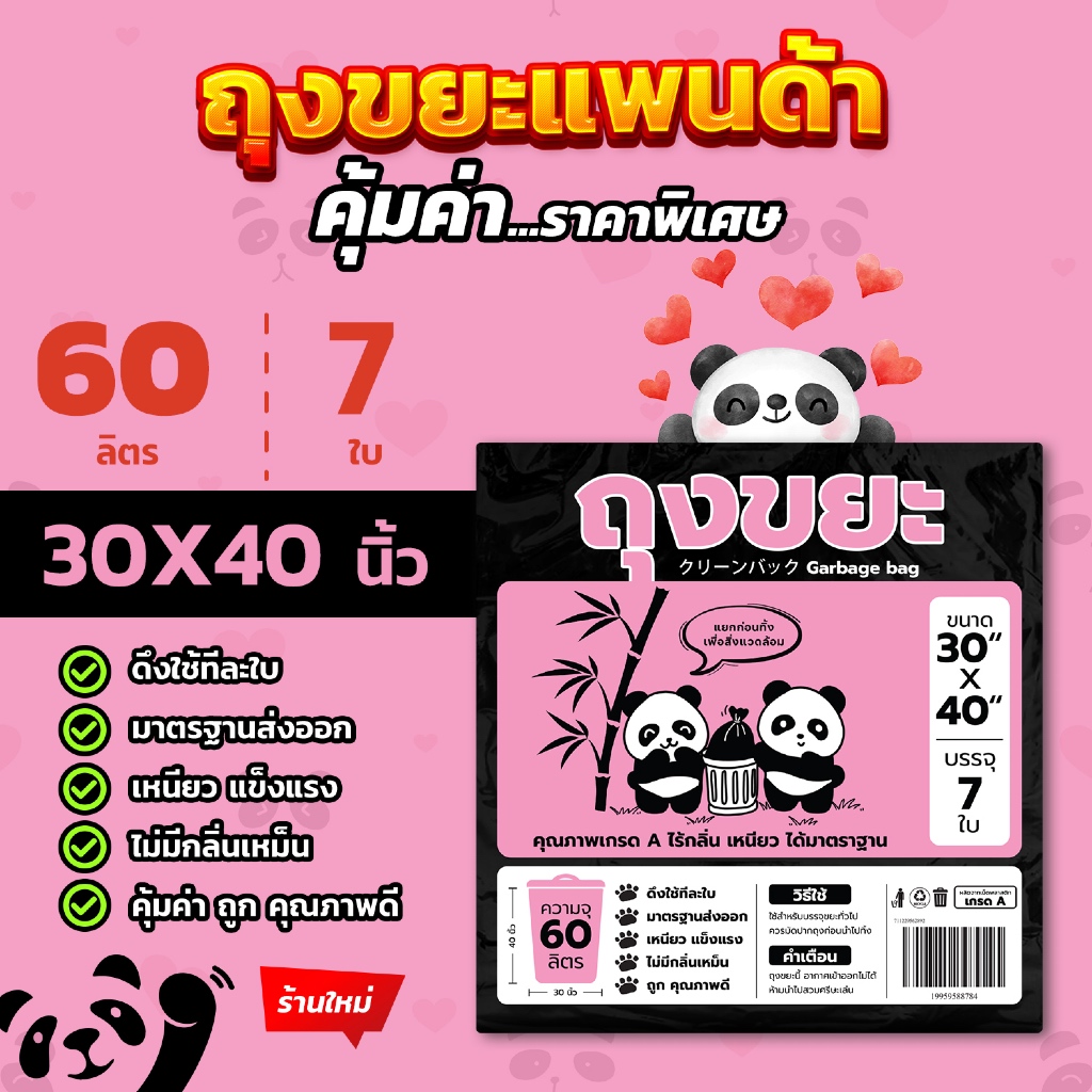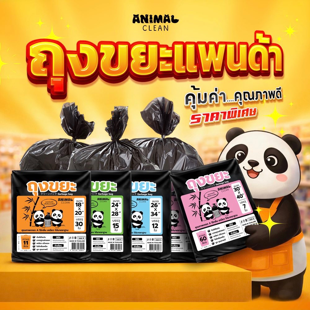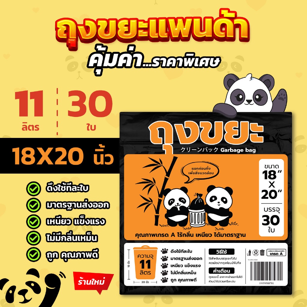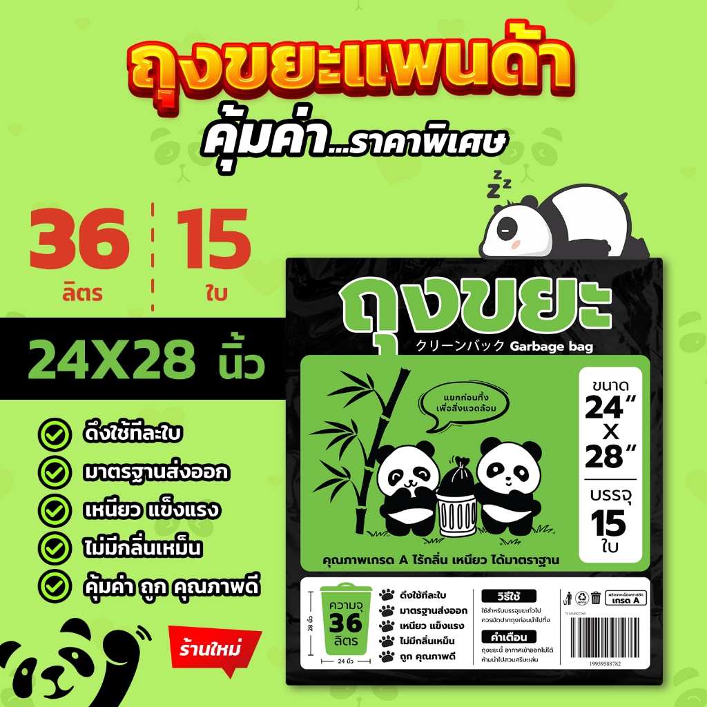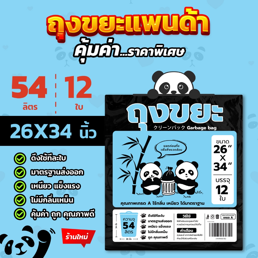 ถุงขยะแพนด้า แบบพับ ดึงใช้ทีละใบ เหนียว ไม่รั่ว ไร้กลิ่นคุ้มค่า มี 4 ขนาด ใส่ขยะเปียกและขยะแห้งได้
