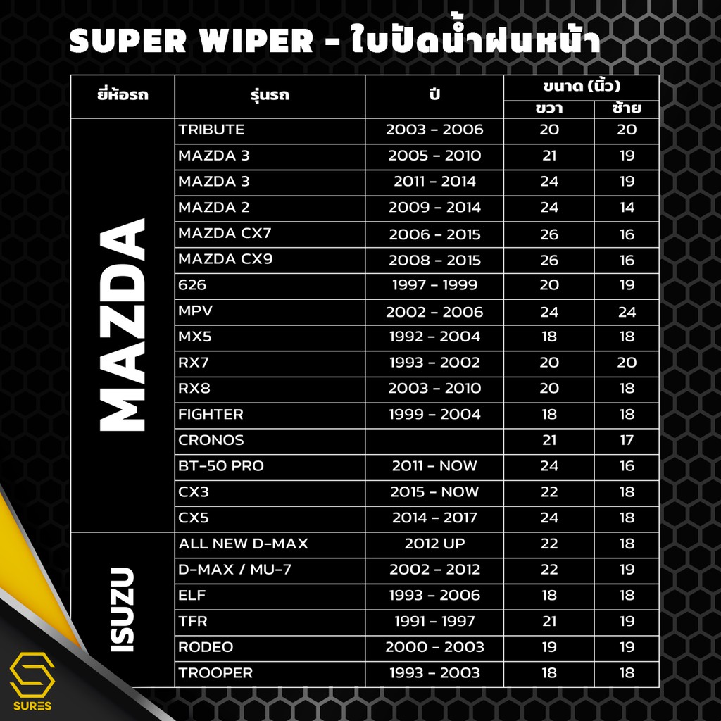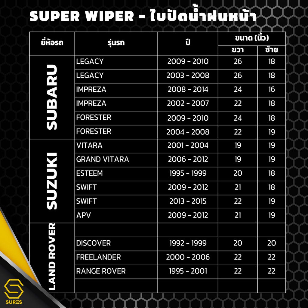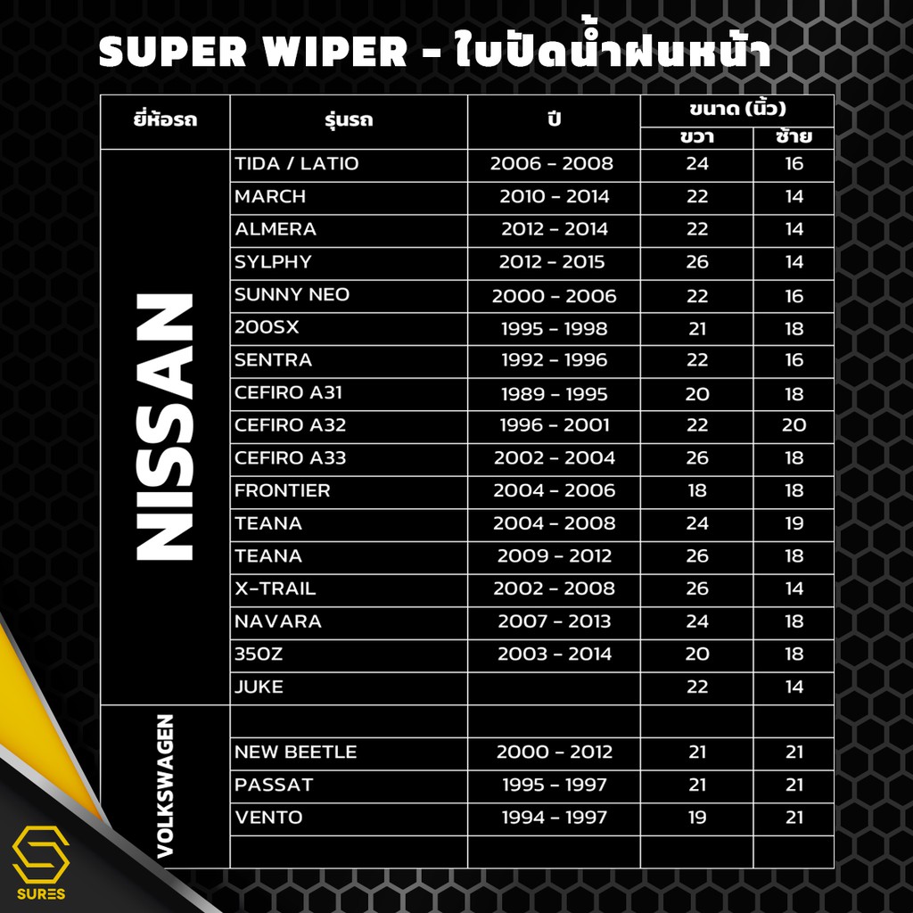 ใบปัดน้ำฝนหน้า SUPER WIPER Frameless