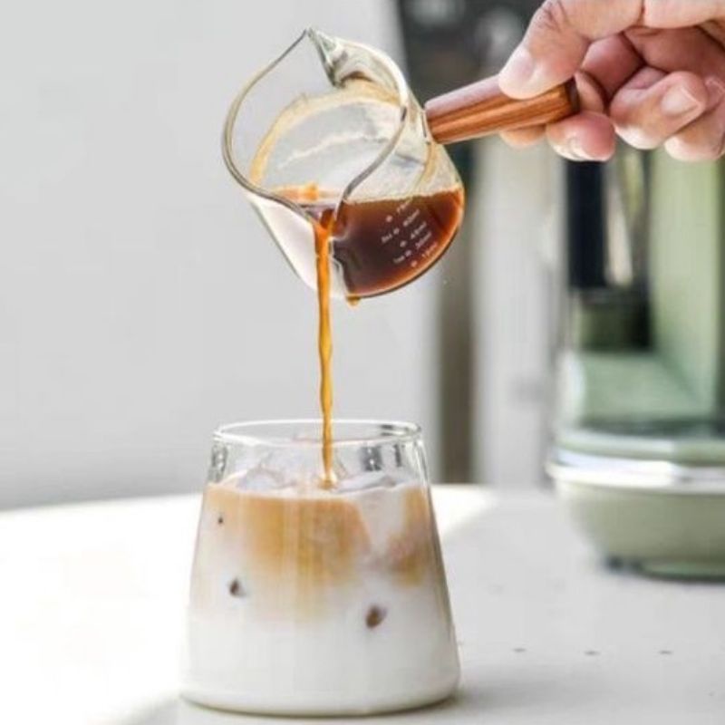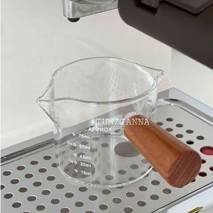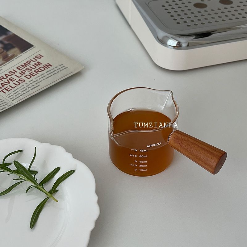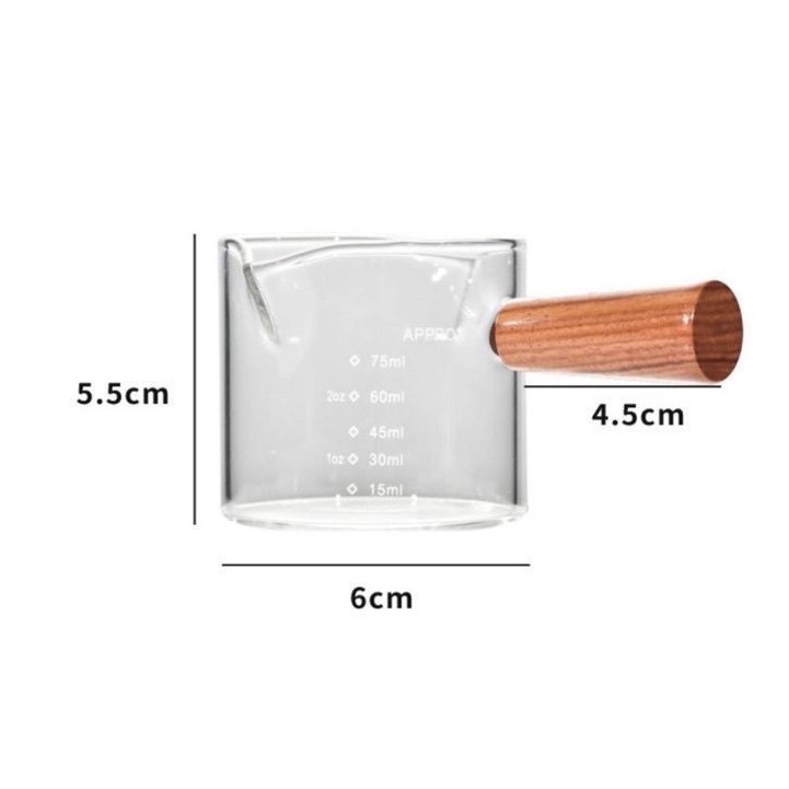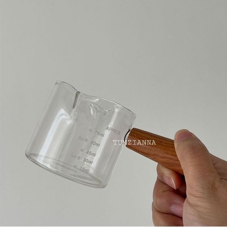 พร้อมส่ง แก้วตวงส่วนผสม 75ml ด้ามจับไม้ ปากเท2ปาก และ Scale วัดปริมาณ
