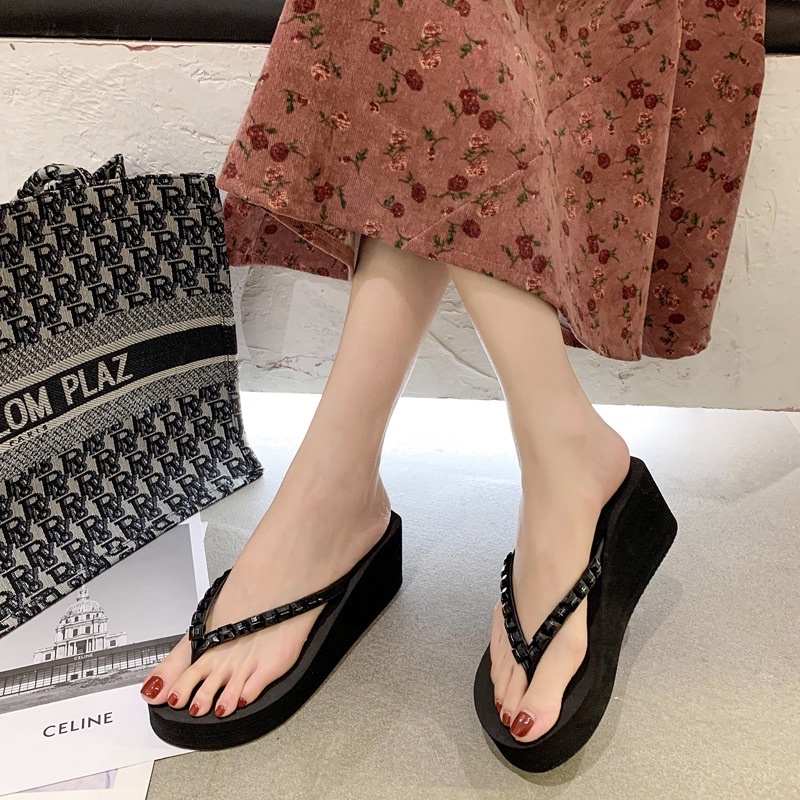 ส่งไว❤️🔥 35-40 รองเท้าแตะส้นสูง แบบหนีบ ประดับคริสตัล น้ำหนักเบา ใส่สบาย PALIN.BASIC