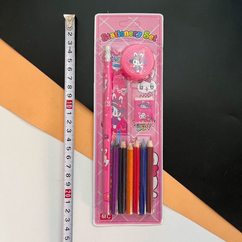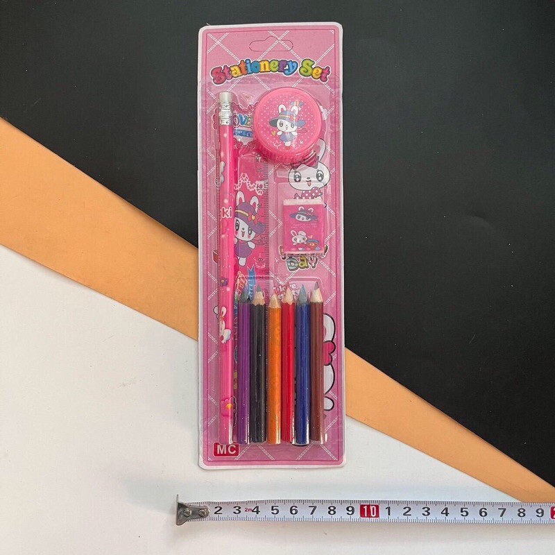 (ยกโหล 12 ชิ้น) No.025 ชุดเครื่องเขียน ชุดเครื่องเขียนแผง สีไม้ ดินสอ ยางลบ กบเหลา ไม้บรรทัด 1 แผงมี 5 ชิ้น