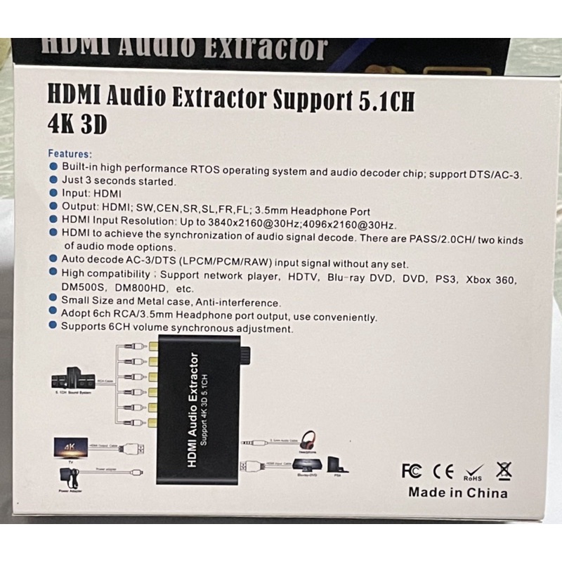 4K HDMI Audio Extractor ถอดรหัสโคแอกเชียล RCA AC3/DST ถึง5.1แอมพลิฟายเออร์อะนาล็อก Converter 5.1CH 3D For PS4 DVD Player