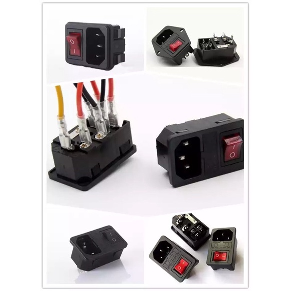 IEC320 C14ไฟฟ้า AC ซ็อกเก็ต3ขาสีแดง LED 250V Rocker Switch 10A ฟิวส์หญิงชาย Inlet Plug Connector 4 Pin Socket Mount