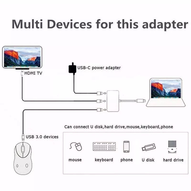 Mosible USB C HUB HDMIสำหรับMacbook Pro/Air Thunderbolt 3 USB Type Cอะแดปเตอร์สนับสนุนSamsung dexโหมดPD USB 3.0 สี Gray