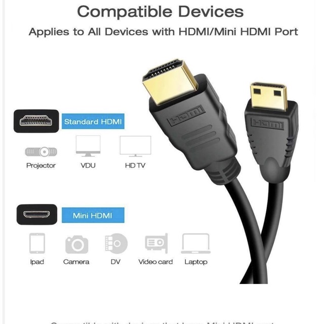 MINI HDMI TO HDMI สายเคเบิลอะแดปเตอร์ความเร็วสูงพร้อมปลั๊กสีทองสำหรับกล้องโปรเจคเตอร์โน้ตบุ๊ค 1.5M 5M